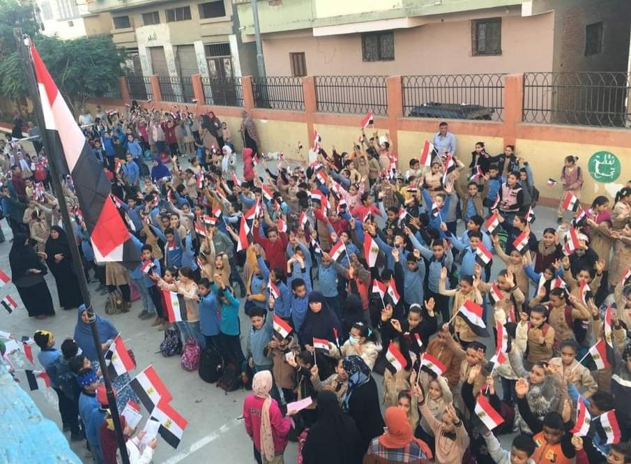 وشهد "علي عبد الرؤوف" وكيل وزارة التربية والتعليم بدمياط، طابور الصباح الذي شمل ملحمة وطنية كبيرة في حب مصر من جميع طلاب ومعلمي المدرسة حاملين أعلام مصر ومرددين الأناشيد الوطنية لتعزيز الولاء والانتماء للوطن.