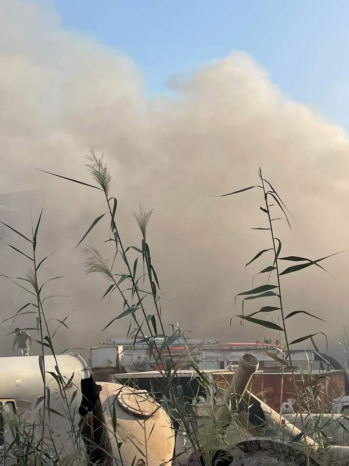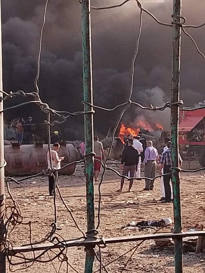 حريق في مخزن خردة بجراج شركة مياه الشرب بالمحلة الكبرى|صور