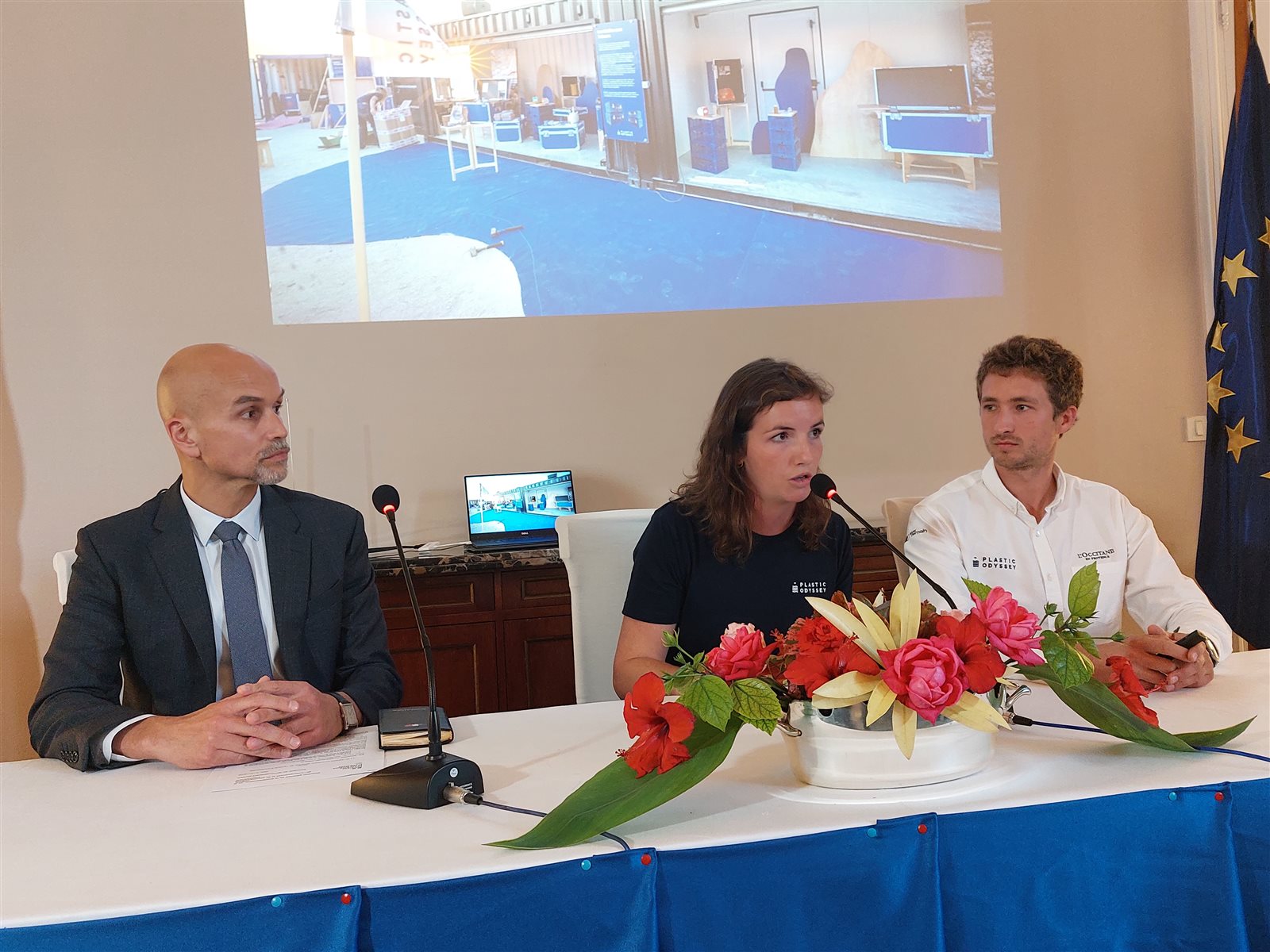 واوضح برنار، انه يوجد ٧ من رواد الأعمال في مصر سيأتوا للسفينه الراسية بالميناء لبدء مبادرة خاصة بمكافحه تلوث البلاستيك وتستمر لمده ١٠ أيام بالمدينة، لافتا إلى أن أولي خطواتنا في ذلك إعادة تدوير البلاستيك وتقليل استخدامه، كما سيكون هناك معرض بالمركز الثقافي الفرنسي الأسبوع المقبل لرفع الوعي لمواجهة تلوث البلاستيك وأيضا برنامح للأطفال والطلبة خاص بهم لنفس الغرض، كما سيكون هناك مقابلات مع جامعي القمامة في القاهرة وزيارات مدرسية تتضمن ورش عمل.