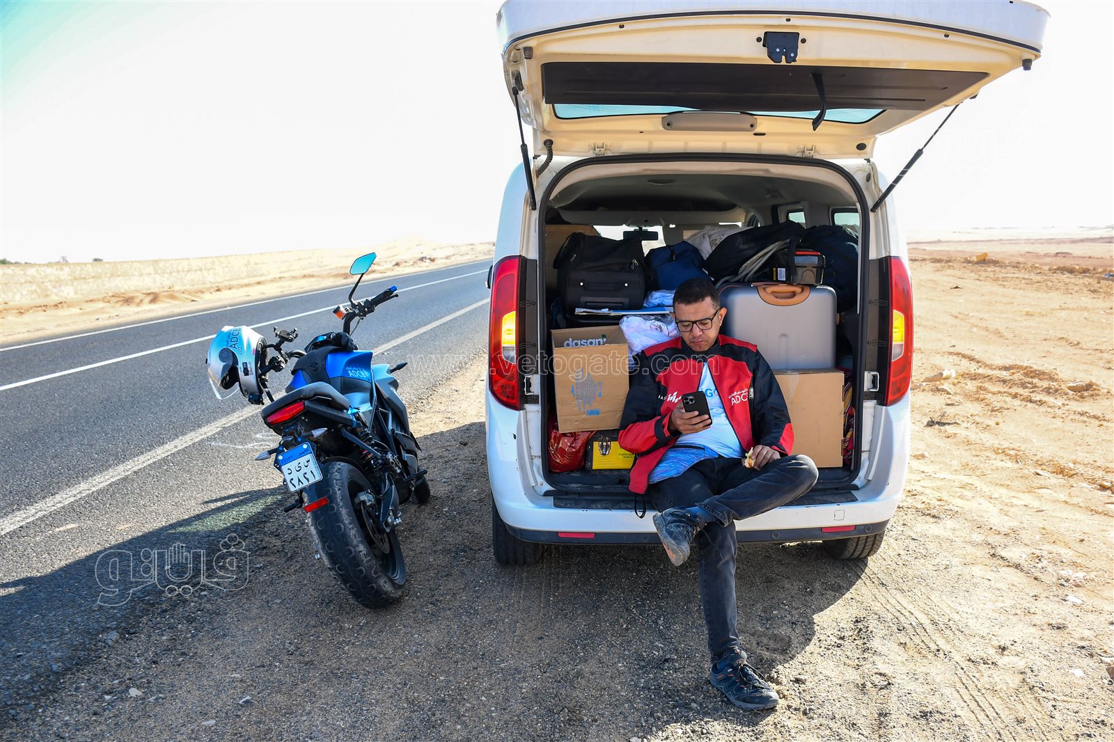 وعن المشاكل التي واجهته في الرحلة قال: "عدم وجود محطات شحن للدراجة وهو ما يكلفني وقتًا كبيرًا للشحن من 4 إلى 6 ساعات من أجل السير لمسافة من 100 إلى 200 كيلو والمشكلة الثانية هي الطقس المتنوع من محافظة لأخرى ".
