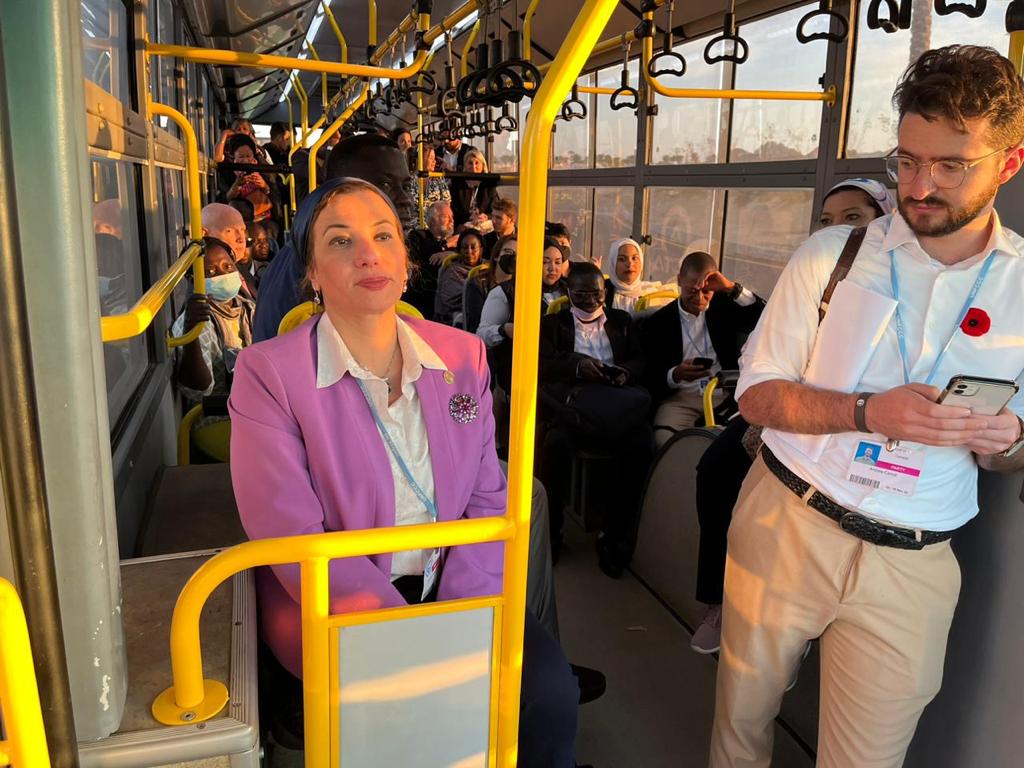 قامت الدكتورة ياسمين فؤاد وزيرة البيئة والمنسق الوزاري ومبعوث مؤتمر المناخ بالتجول بالأتوبيس الكهربائي من المنطقة الزرقاء إلى المنطقة الخضراء لتجربته كوسيلة جديدة تم تنفيذها بمدينة شرم الشيخ ضمن إجراءات تحويلها لمدينة خضراء، وذلك على هامش فعاليات مؤتمر الأطراف الـ ٢٧ لاتفاقية الأمم المتحدة الإطارية للتغيرات المناخية.