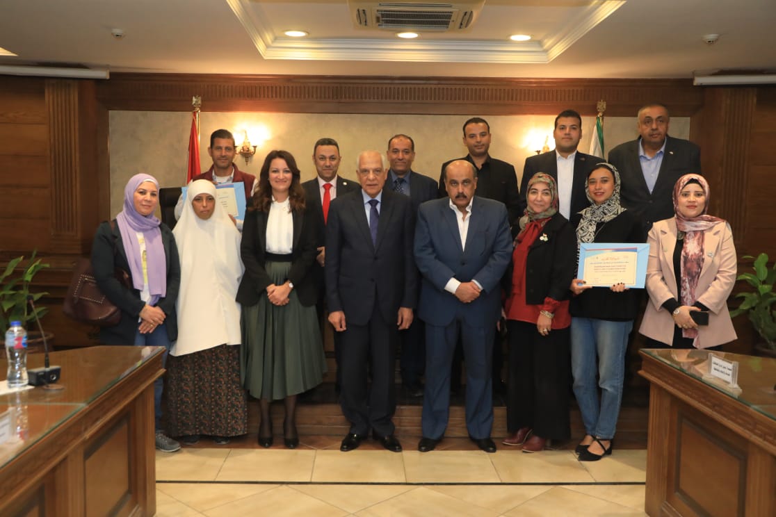 وأثنى المحافظ على جهود اللجنة التنفيذية، والتي بدأت منذ صدور قرار رئاسة الوزراء 2738 لسـنة 2022 بشـأن الإطار التنظيمي للمبادرة التي أشرفت عليها وزارة التخطيط، حيث قامت اللجنة بالإعلان عن المبادرة وفئات المشروعات المندرجة تحتها، مرورًا بالمتابعة المستمرة لأصحاب المشروعات المقدمة ومناقشتهم لاختيار المشروعات المستوفية للشروط ورفعها وتسجيلها على المنصة المخصصة لذلك، انتهاء بالتقييم ثم الإعلان عن المشروعات الفائزة وشهدت الفاعلية تكريم أصحاب مشروعات المركز الثاني والثالث من الفئات الستة للمبادرة وهم محمود عبد الغني محمود عن مشروع منتجات يدوية من المخلفات الزراعية والجريد وأشجار النخيل، ورحاب مصطفي محمد عن مشروع مبادرة عيشيها صح أنتي قدها، و سلمى مصطفي أحمد عن مشروع أعادة تدوير المخلفات،ونيفين محمود بدر عن مشروع كيوا، ومحمد محمود محمود عن مشروع التنمية الزراعية الرقمية المستدامة وهايدي حسن الجندي ( فئة الشركات الناشئة)، ثريا رافت يوسف عن مشروع تخضير الصحراء وزراعة مليون شجرة، وفاطمة أيمن حسن عن مشروع المرأة والتنمية المستدامة.