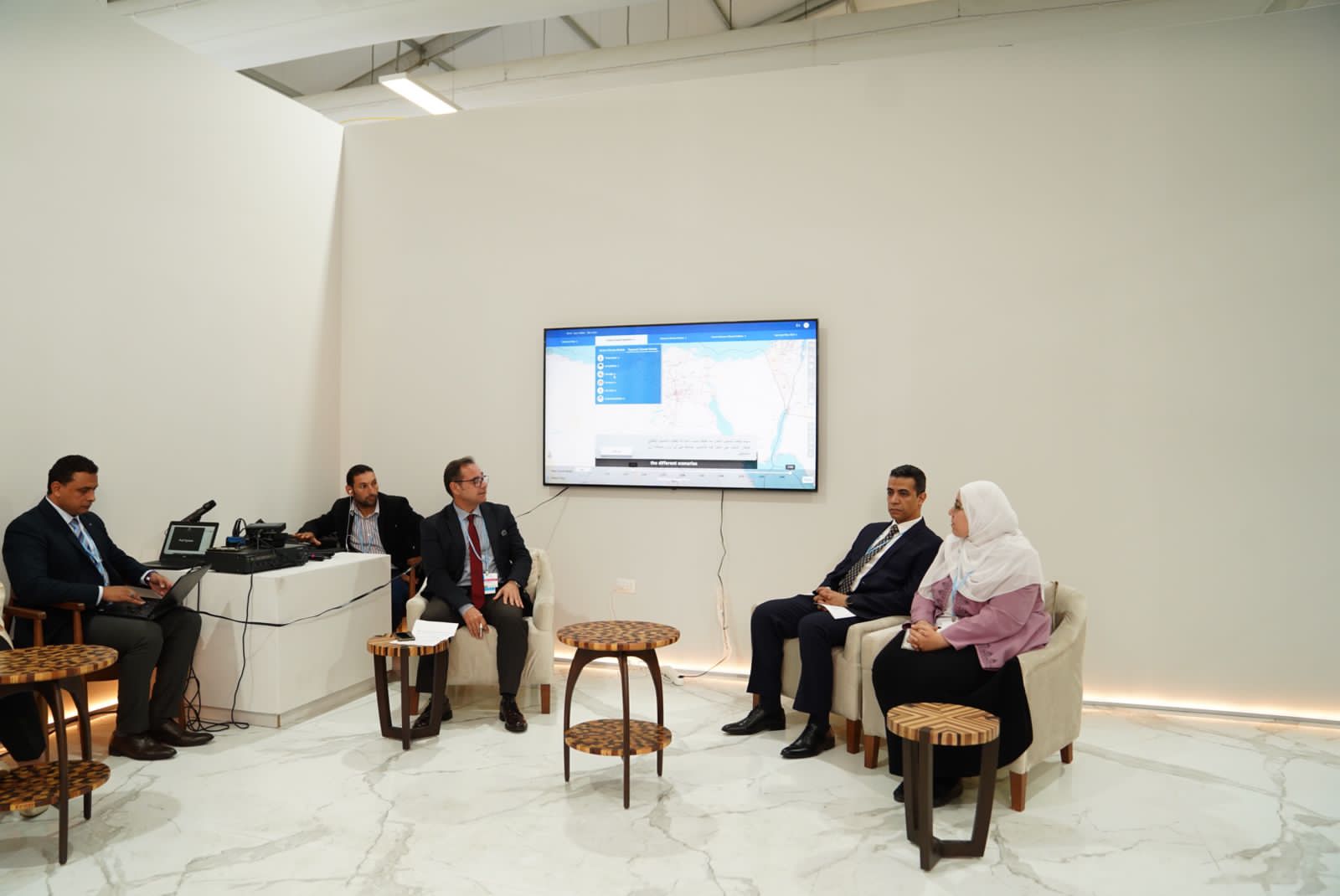 واستعرض المهندس شريف عبد الرحيم تطبيق الخريطة التفاعلية الذي تم بناءه بالاعتماد على نظم المعلومات الجغرافية GIS، حيث تم عرض كافة وظائف التطبيق والعوامل المناخية والتى تتضمن درجات الحرارة المتوسطة ومجموع كميات الأمطار والرطوبة النسبية وعدد ساعات سطوع الشمس والرياح بالإضافة لبعض المؤشرات المناخية الخاصة بدرجات الحرارة والأمطار بالاضافة الى مؤشر للعواصف الترابية ومؤشر البخر، والاحداث المناخية المتطرفة وبطيئة الحدوث مثل ارتفاع مستوى سطح البحر.