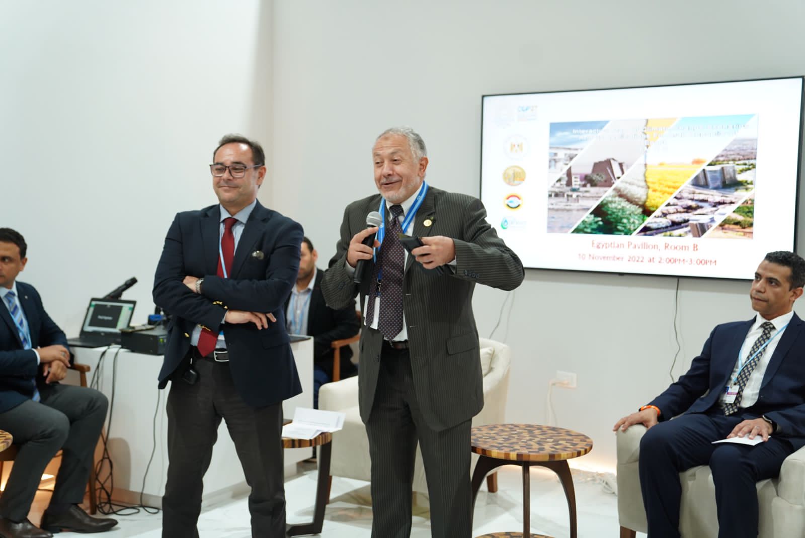 ومن ناحية اخرى تناولت الجلسة عرضا للمنهجيات العلمية والنماذج المناخية العالمية والإقليمية التي تم استخدامها للتنبؤ بالمخاطر والتهديدات المحتمل ان تتعرض لها جمهورية مصر العربية حتى عام 2100 وذلك وفقًا لبيانات محطات الرصد الوطنية التابعة لهيئة الأرصاد الجوية المصرية ومعهد بحوث الشواطئ ومعهد بحوث تغير المناخ بوزارة الموارد المائية والري وفقا لسيناريوهات الهيئة الحكومية الدولية المعنية بتغير المناخ IPCC 4.5 و 8.5، لعرض مستوي التأكيد المناسب (Certainty/Uncertain) بشأن توقعات تغير المناخ حتي عام 2100.