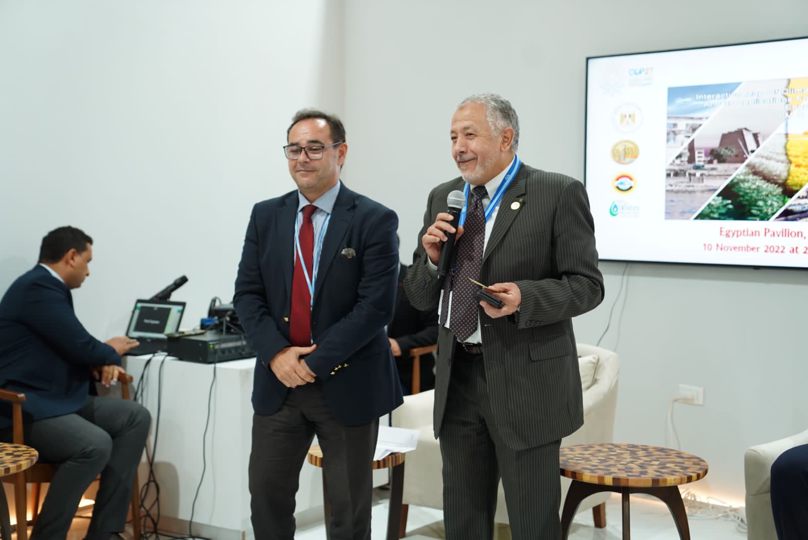 جاء ذلك بحضور المهندس شريف عبد الرحيم رئيس الإدارة المركزية للتغيرات المناخية ونقطة الاتصال الوطنية للتغيرات المناخية لمصر نيابة عن الدكتورة ياسمين فؤاد وزيرة البيئة المنسق الوزارى ومبعوث مؤتمر المناخ وبمشاركة السكرتير التنفيذي للهيئة الحكومية الدولية المعنية بتغير المناخ IPCC ونائب رئيس وكالة الفضاء المصرية ورئيس هيئة الأرصاد الجوية المصرية ورئيس معهد بحوث الشواطئ (شاركا افتراضيًا)، رئيس قطاع ادرة الازمات والكوارث والحد من المخاطر بمركز معلومات دعم واتخاذ القرار، ممثل عن إدارة المساحة العسكرية، ولفيف من الخبراء بمختلف الجهات المعنية بالتغيرات المناخية على المستوى الوطني والإقليمي والدولي.