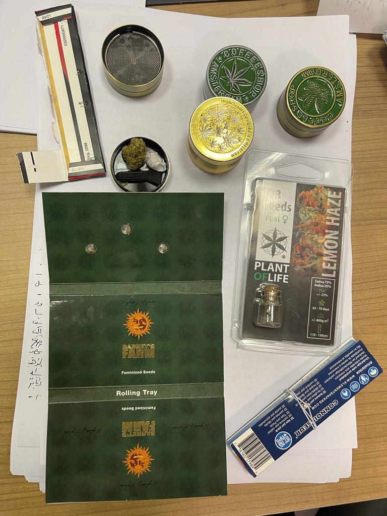 والحالة الثانية أثناء إنهاء الإجراءات الجمركية على ركاب رحلة الخطوط المصرية القادمة من أمستردام استوقف حسام محمد الشافعي مأمور الجمرك المعين على لجنة الخط الأخضر أحد الركاب اثناء محاولته الخروج من بوابة اللجنة الجمركية والذي أنكر أيضًا حوزته لما يجب الإفصاح عنه، وبتفتيش حقائبه على جهاز الفحص بالأشعة بواسطة محمد صلاح مأمور الجمرك والذي تلاحظ له وجود كثافات عضوية معتمة داخل الحقائب، قام حازم محمد على مدير الحركة المشرف على الصالة بتكليف بسمة حسني عبد الحميد مأمور الجمرك بتفتيش حقائب الراكب يدويا مما أسفر عن ضبط ٤ مطاحن تستخدم في تعاطي المخدرات بأحدهم قطعة من مخدر الماريجوانا وزجاجة صغيرة بداخلها ٣ بذور لنبات الماريجوانا المخدر وغلاف كرتون به ٣ بذور لنفس النبات المخدر، كما تم ضبط لفافة بها قطعة من مخدر الحشيش.
