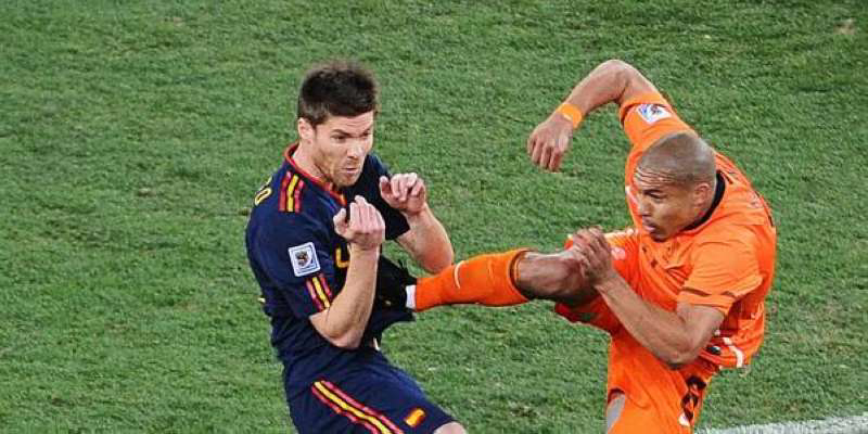 وفي نهائي مونديال جنوب افريقيا 2010، لم يحرز الهولندي نايجل دي يونغ لقب كأس العالم، بعدما خسر منتخب بلاده أمام إسبانيا بنتيجة 1-صفر بعد التمديد، الا ان اللاعب الهولندي أحرز «ميدالية» في رياضات الألعاب القتالية، بعدما سدّد ركلة بقدمه المرتفعة لأكثر من متر عن أرض الملعب، في صدر الإسباني تشابي ألونسو في الدقيقة 28.