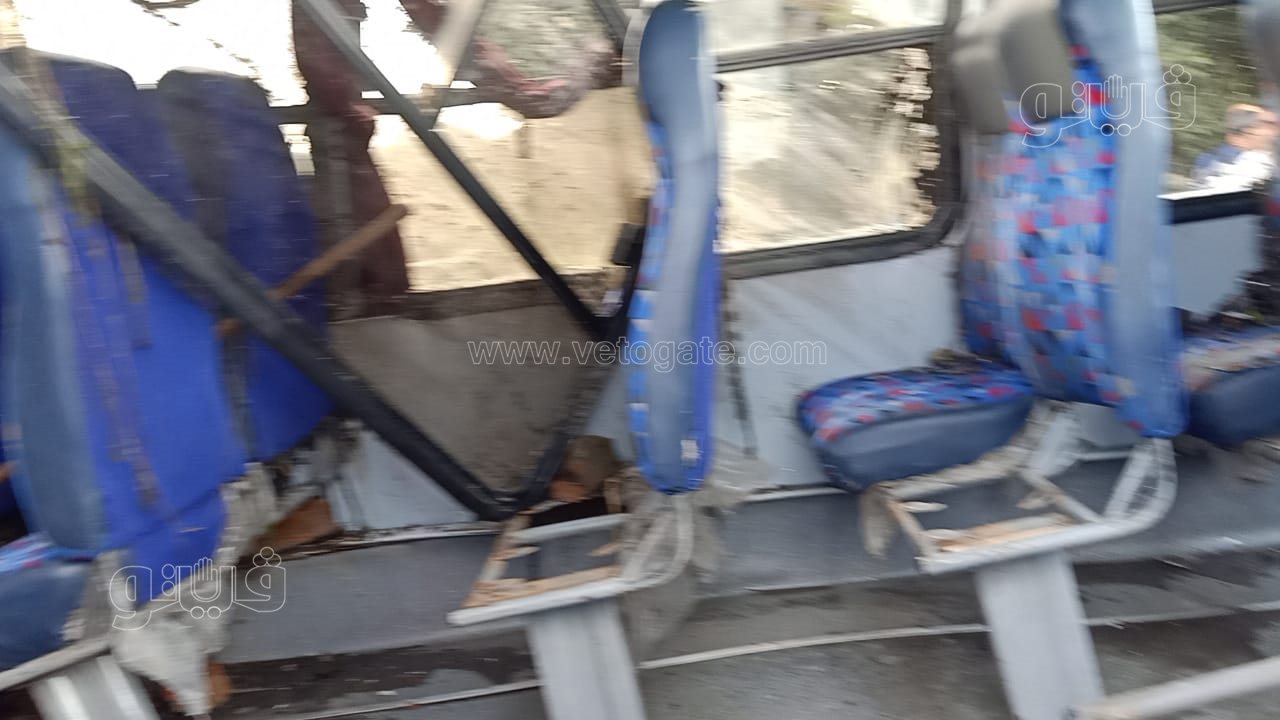 وفي أثناء تجوال “فيتو” في موقع الحادث وعند السماح لنا بالدخول إلي الأتوبيس الذي شهد الحادث وجدنا كراسي متهالكة وحطام أتوبيس تحول إلي علبة صفيح بالإضافة إلي نضارة أحد الذين كانوا يستقلون الأتوبيس.