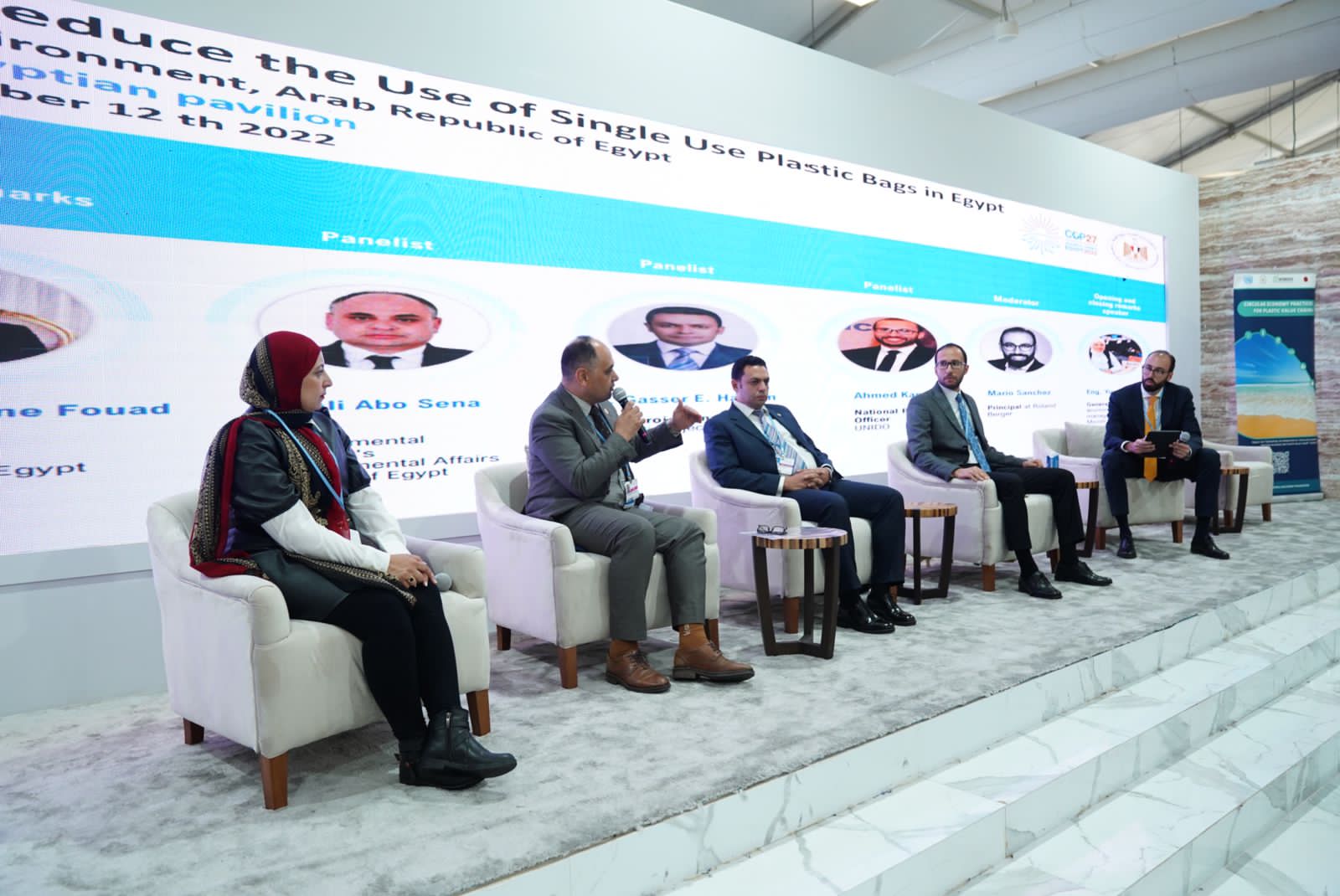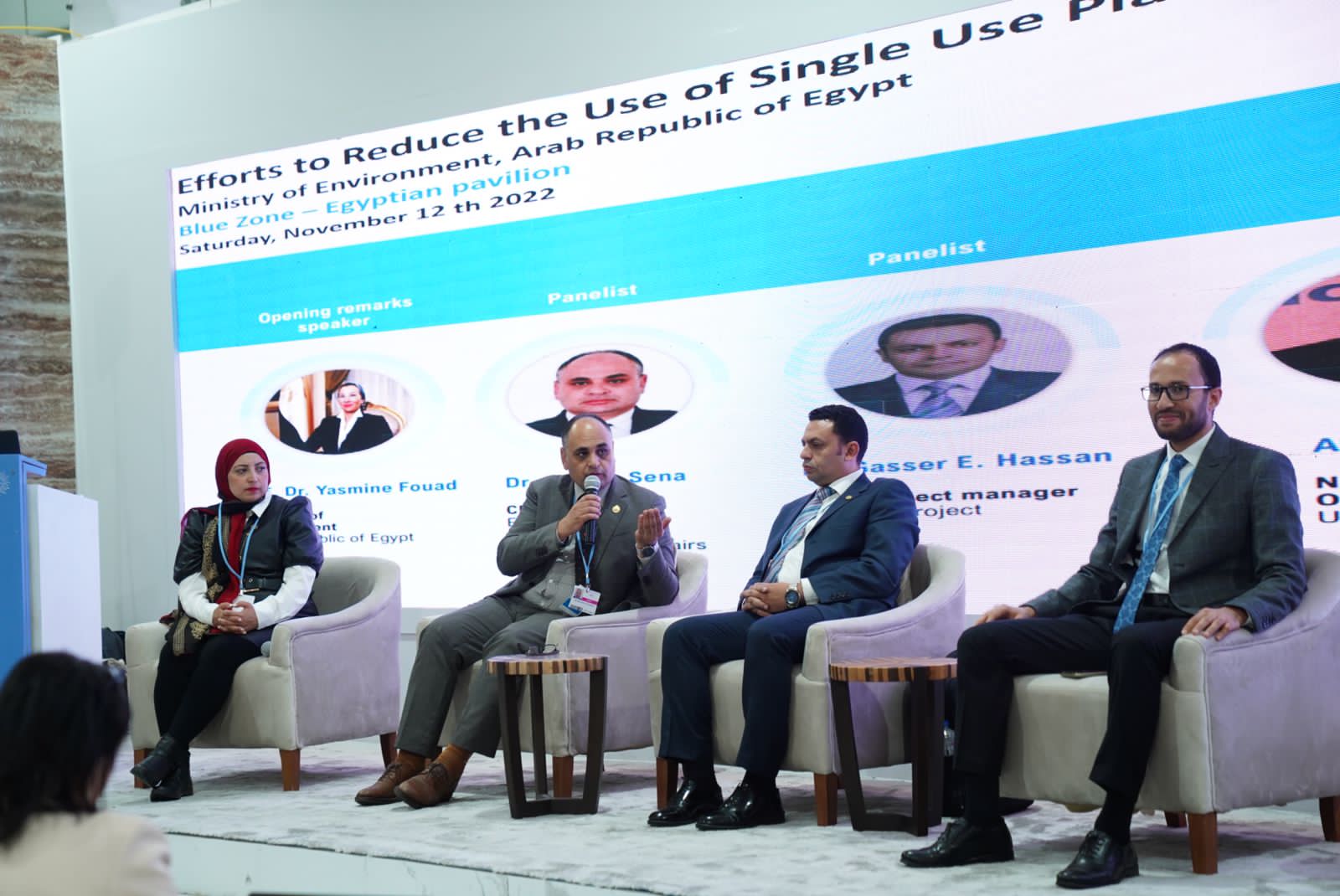 جاء ذلك خلال مشاركة الدكتور على أبو سنة الرئيس التنفيذى لجهاز شئون البيئة، نيابة عن الدكتورة ياسمين فؤاد وزيرة البيئة والمنسق الوزاري ومبعوث مؤتمر المناخ cop27، فى الجلسة الخاصة بعرض جهود وزارة البيئة المصرية فى الحد من" استخدام الأكياس البلاستيكية أحادية الاستخدام "والتى أقيمت بالمنطقة الزرقاء في إطار فعاليات اليوم السابع لمؤتمر المناخ COP 27 بمدينة شرم الشيخ.