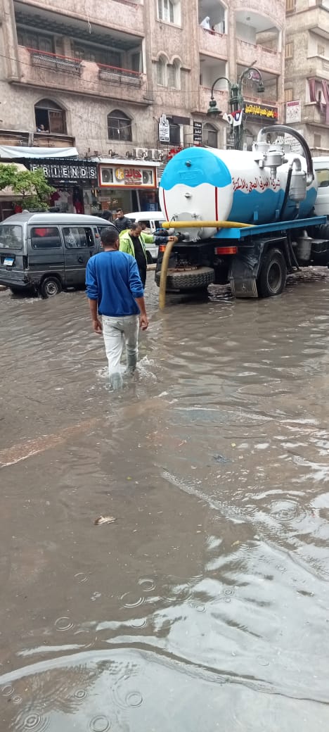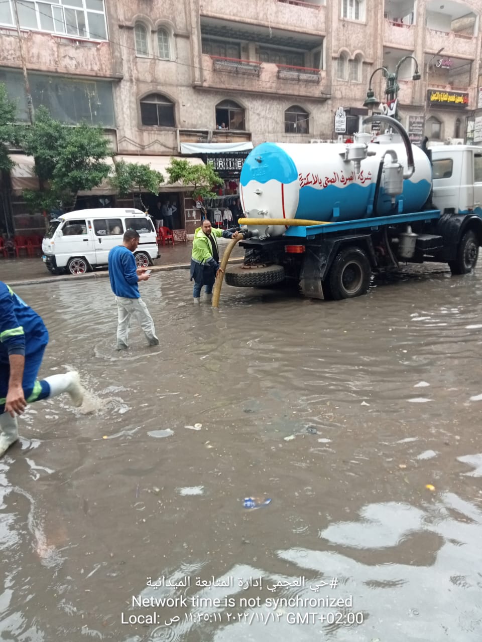 وكان قد تابع اللواء محمود نافع رئيس مجلس إدارة شركة الصرف الصحي بالإسكندرية أعمال رفع تجمعات مياه الأمطار بميدان زويل وأمام الموقف التي ظهرت نتيجة للأمطار الكثيفة على منطقة وسط.