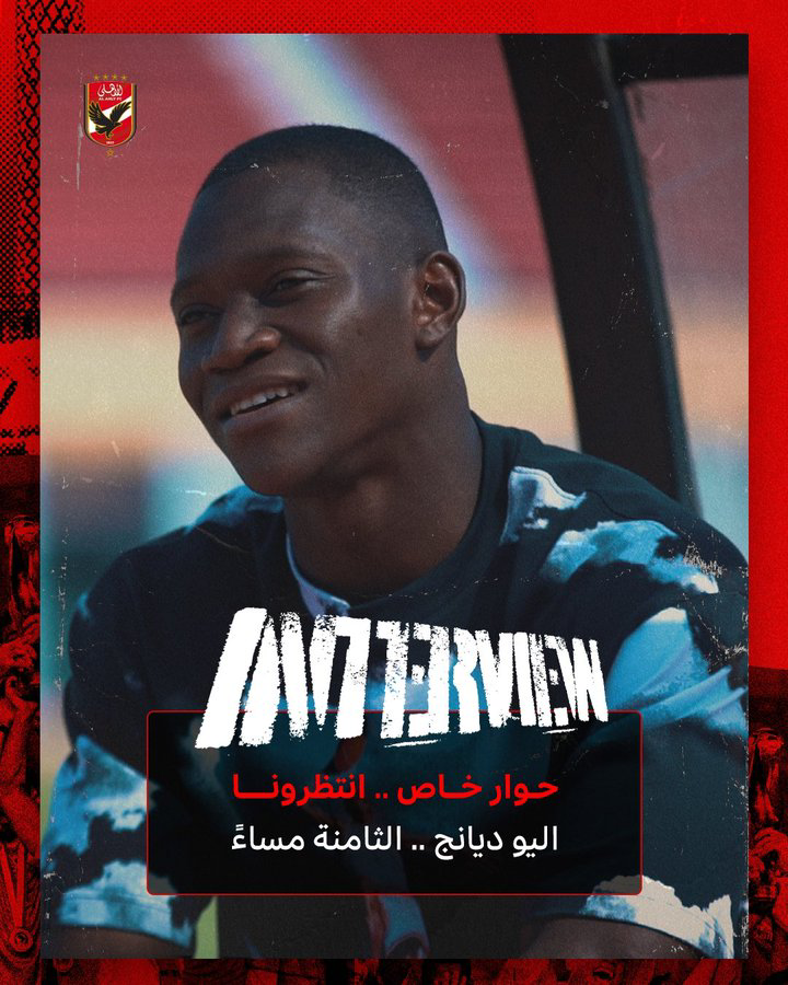 ونشر الحساب الرسمي للنادي الأهلي عبر فيس بوك صورة ل" ديانج وعلق عليها:حوار خاص مع اليو ديانج.. في الثامنة مساء انتظرونا