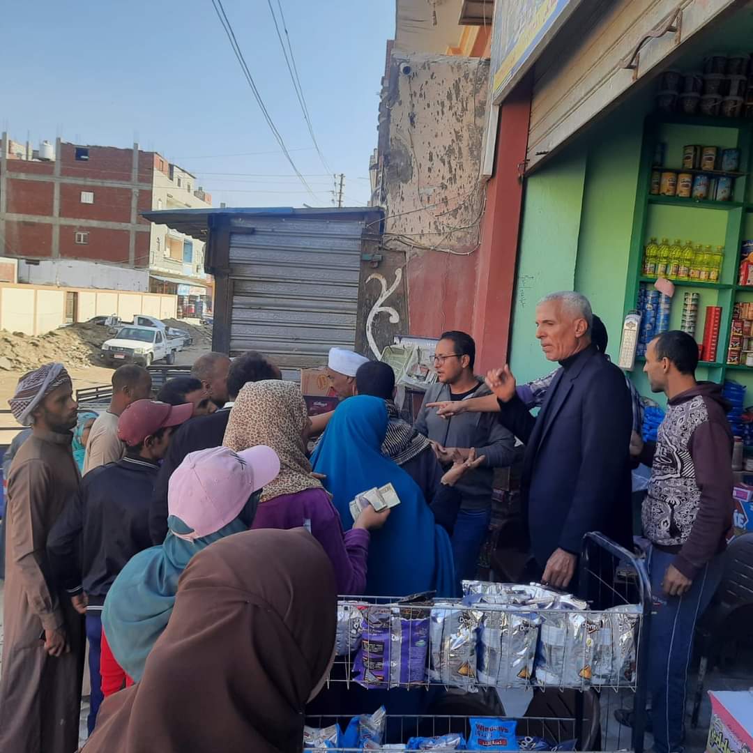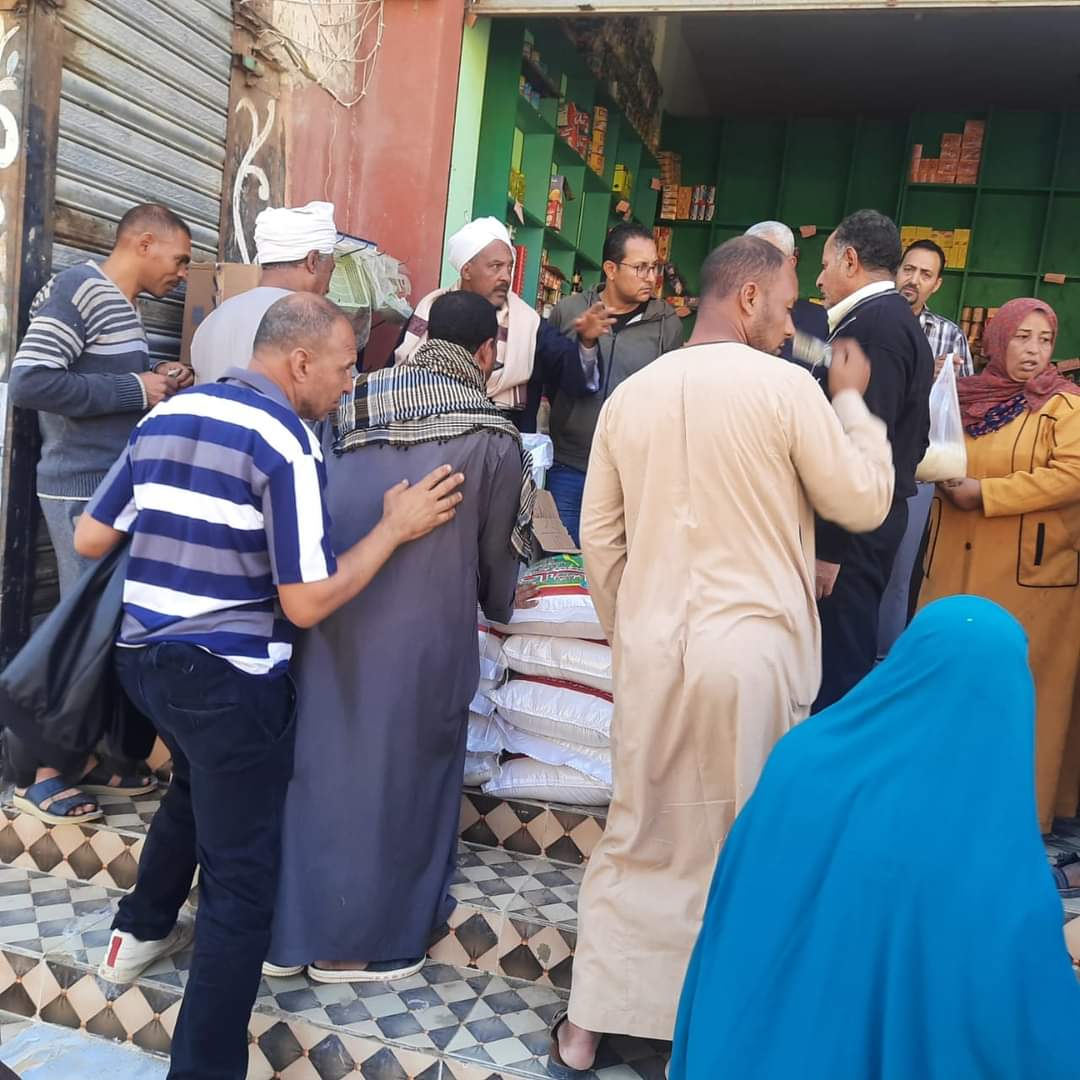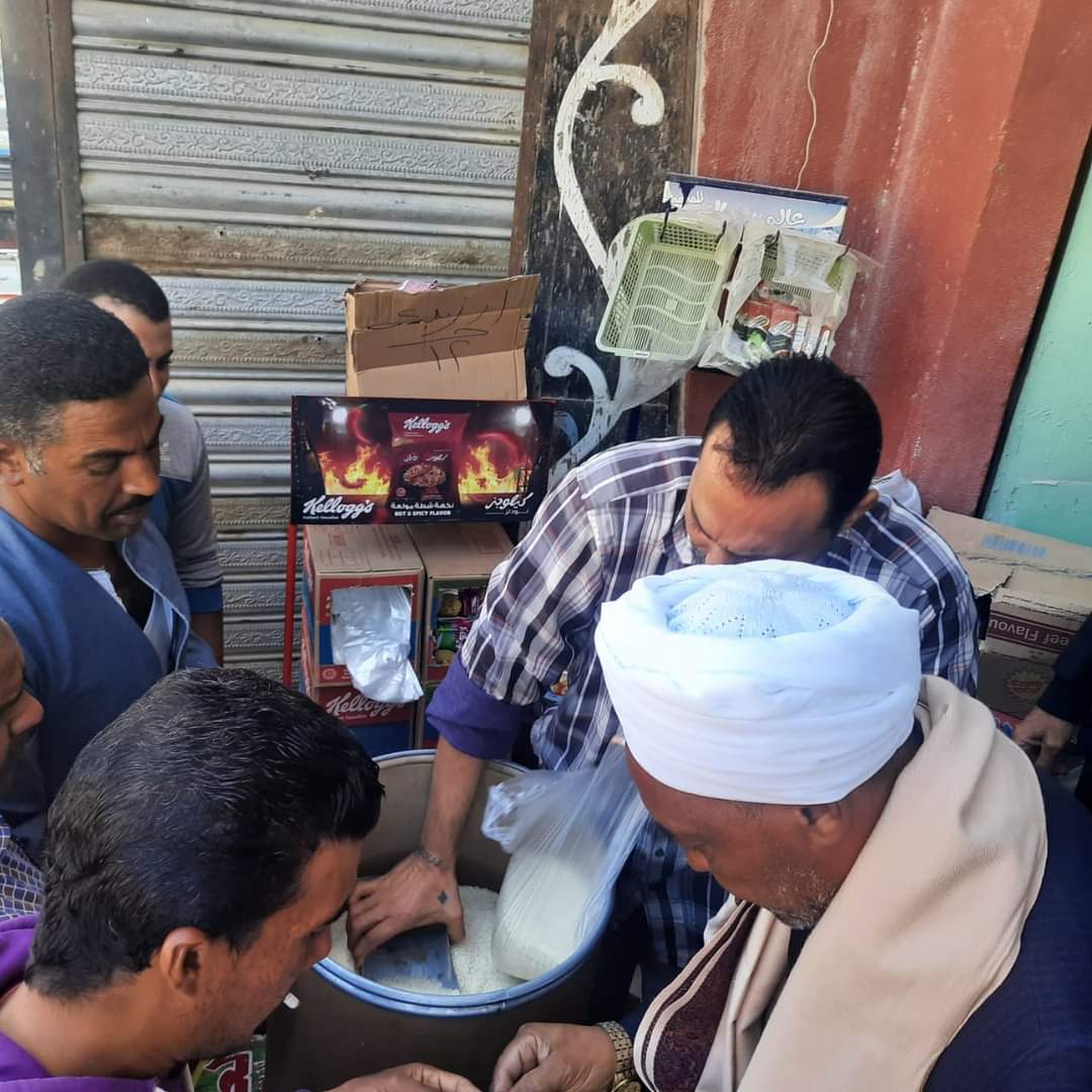 حيث تم طرح الأرز المعبأ للمواطنين بقرية الأبطال وشرق البحيرات بالقنطرة شرق بسعر ١٢ جنيها للكيلو.