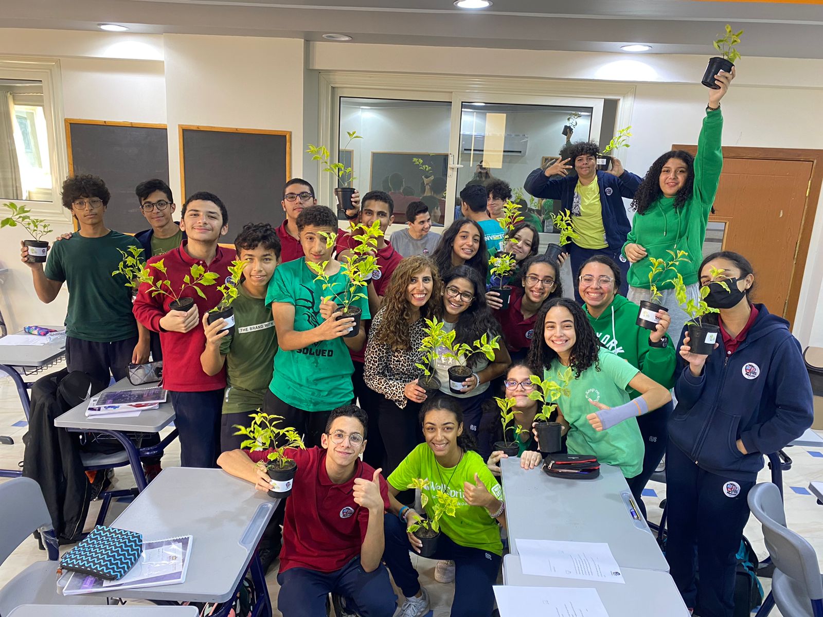 وقالت إدارة المدرسة أن من ضمن وسائل مكافحة تغير المناخ هي زيادة المسطحات الخضراء على وجه الكرة الأرضية وذلك عن طريق زراعة أشجار أكثر، حيث تمتص الشجرة الكاملة النمو نحو 21 كيلوجرام من ثاني أكسيد الكربون فى السنة الواحدة.