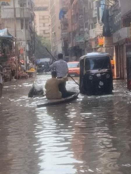 وتداول رواد موقع التواصل الاجتماعي فيس بوك بحي العجمي غرب الإسكندرية، صورا لغرق شوارعهم وقيام بعض الأشخاص بإستخدام فلوكه "قارب صغير"بمنطقة البيطاش وشارع الحنفية بنفس المنطقة، للتجول والعبور في الشارع والتأكيد علي غرق الشوارع الرئيسية والجانبية بسبب تساقط الأمطار علي مدار ساعتين بالحي.