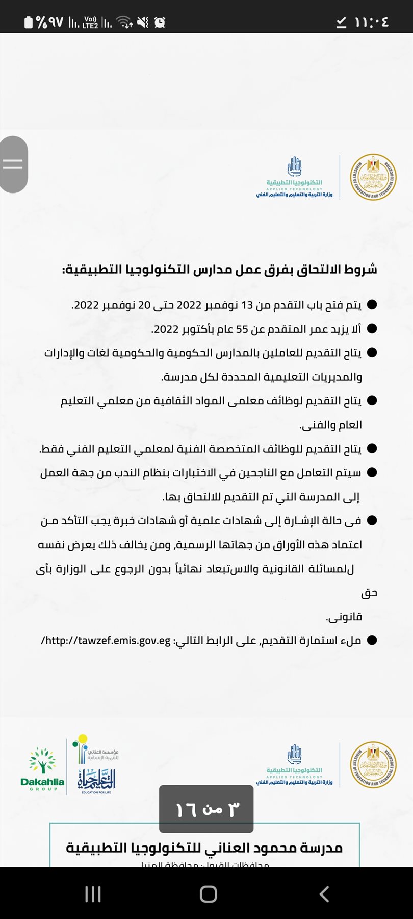 واستكمالا للخدمات التي تقدمها بوابة فيتو لجميع متابعيها ننشر شروطة التقديم للالتحاق للعمل بمدارس التكنولوجيا التطبيقية وهي كالتالي: