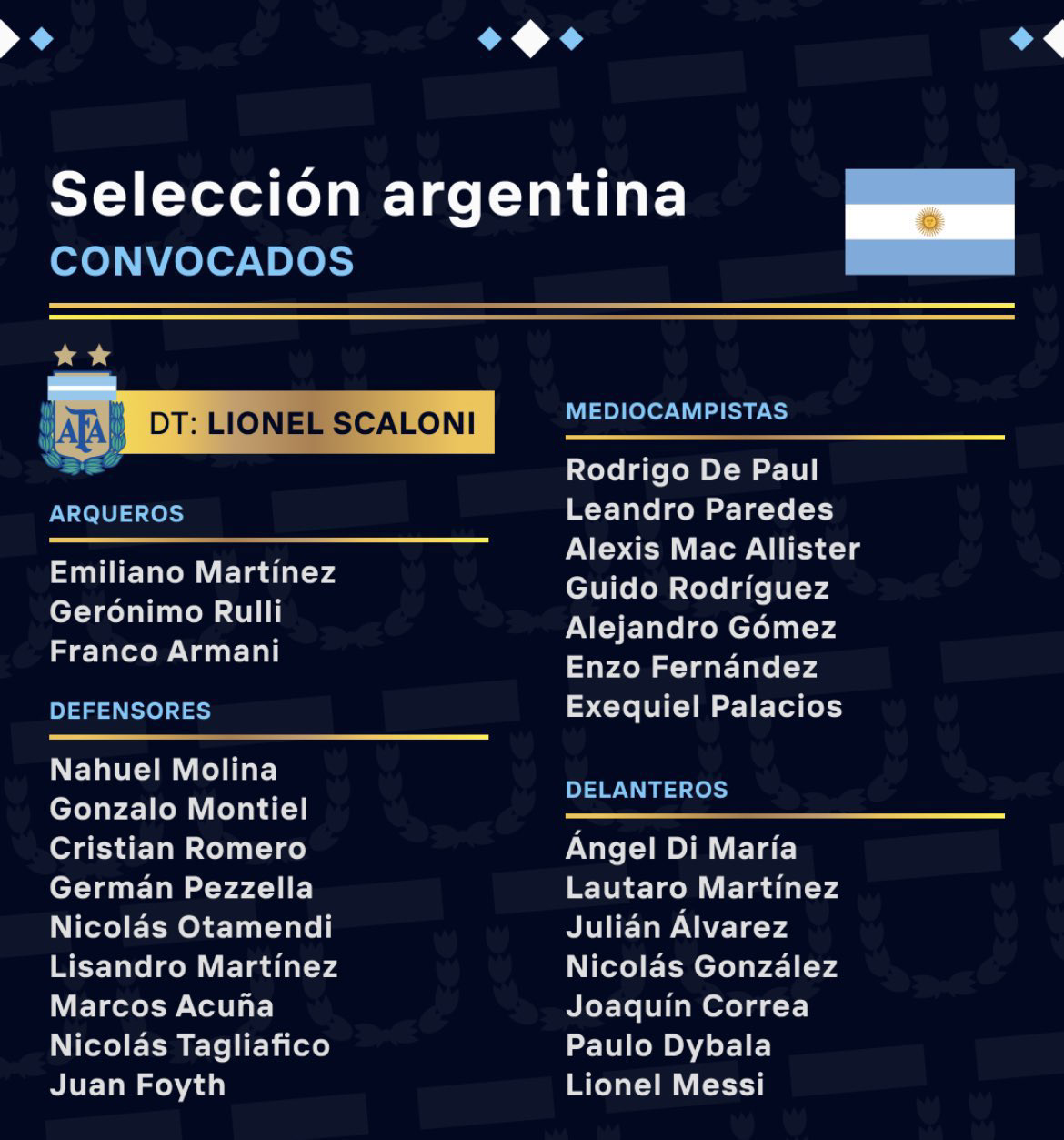 وأعلن منتخب الأرجنتين عن قائمة اللاعبين المشاركين في كأس العالم 2022 في قطر والذي ينطلق في 20 نوفمبر الحالي.