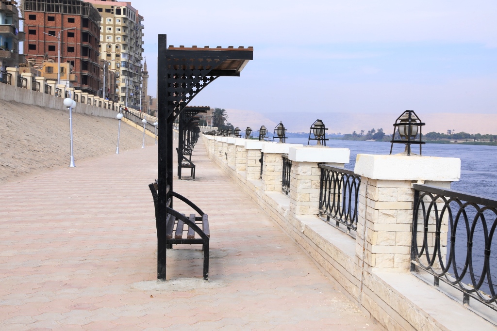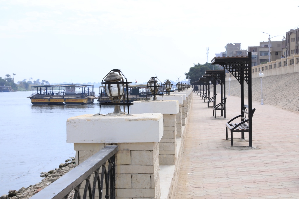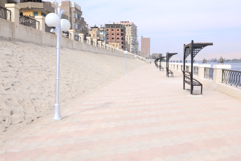 وتفقد المحافظ الممشى الجديد بطول 600 مترا، بتكلفة 7 مليون و600 ألف جنيه، حيث شملت الأعمال إنشاء سور فاصل بالحجر الفرعوني للكورنيش "، وتركيب بلاط الانترلوك، والبرجولات، بالإضافة إلى تدبيش جانب النهر، ورصف الطريق الخارجي، بداية من مرسي العبارات وصولًا إلى مدرسة مصطفى كامل الإعدادية، وبلغت تكلفة الرصف مليون و700 ألف جنيه.