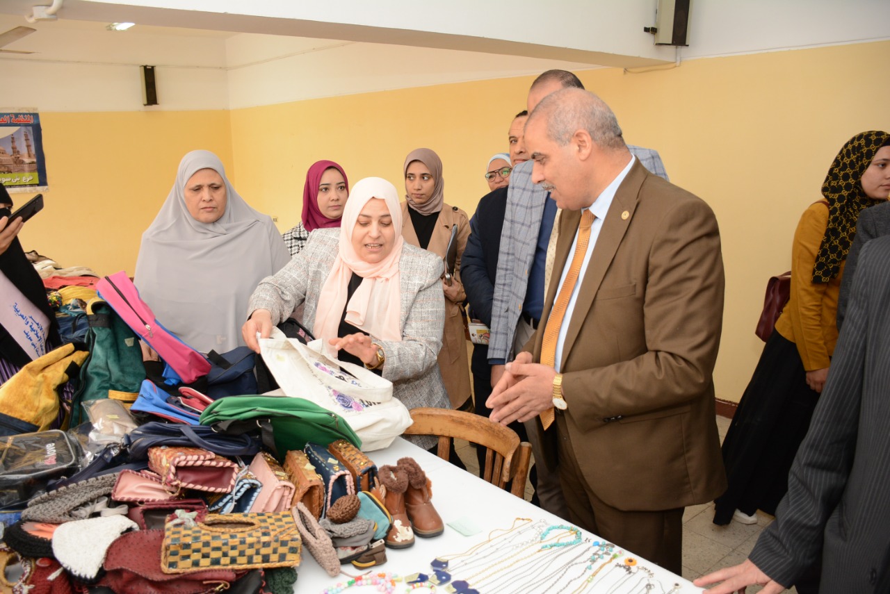 "خريجي الأزهر" تفتتح معرضا للملابس والمشغولات اليدوية في بني سويف | صور