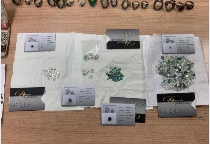 تمكن رجال الجمارك بالإدارة الثانية بمبنى الركاب رقم 2 بمطار القاهرة الدولي برئاسة صبحي ربيع جابر مدير الإدارة من ضبط محاولة تهريب كمية من فصوص الألماس والمشغولات الفضية والأحجار الكريمة بالمخالفة لأحكام القانون رقم 68 لسنه 1976 بشأن الرقابة علي المعادن الثمينة والأحجار ذات القيمة وتعديلاته والقانون رقم 1 لسنة 1994 بشان الوزن والقياس والكيل والقانون رقم 111 لسنة 1980 بشأن ضريبة الدمغة وقانون الجمارك رقم 207 لسنة 2020 وقانون الإستيراد والتصدير رقم 118 لسنة 1975.