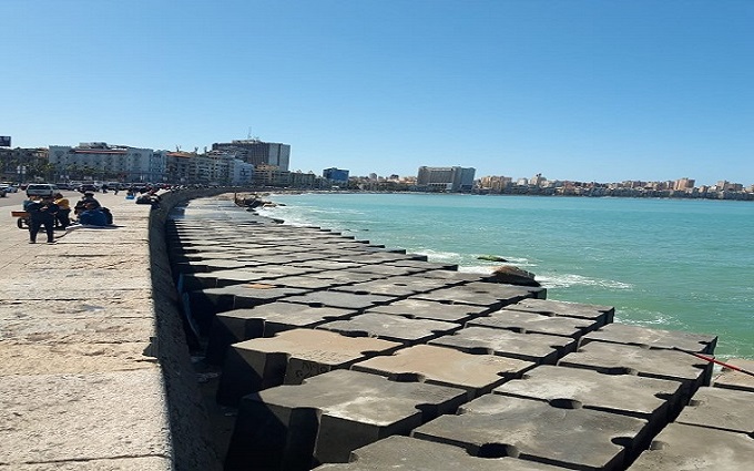 - تنفيذ أعمال ترميم وصيانة البلاطات الخرسانية المجاورة لسور الكورنيش لمسافة ٣٥٠ مترا، بالإضافة لعملية استكمال إنشاء سلسلة من الحواجز الغاطسة بالاسكندرية لحماية الشواطئ وطريق الكورنيش بمنطقة شاطئ السرايا وأمام فندق المحروسة، من خلال إنشاء لسان بحري على شكل حرف L أمام فندق المحروسة بطول حوالى ٦٠٠ متر وإنشاء رصيف بحرى بطول ١٥٥ مترا، نظرًا لتعرض المنطقة للأمواج العالية.