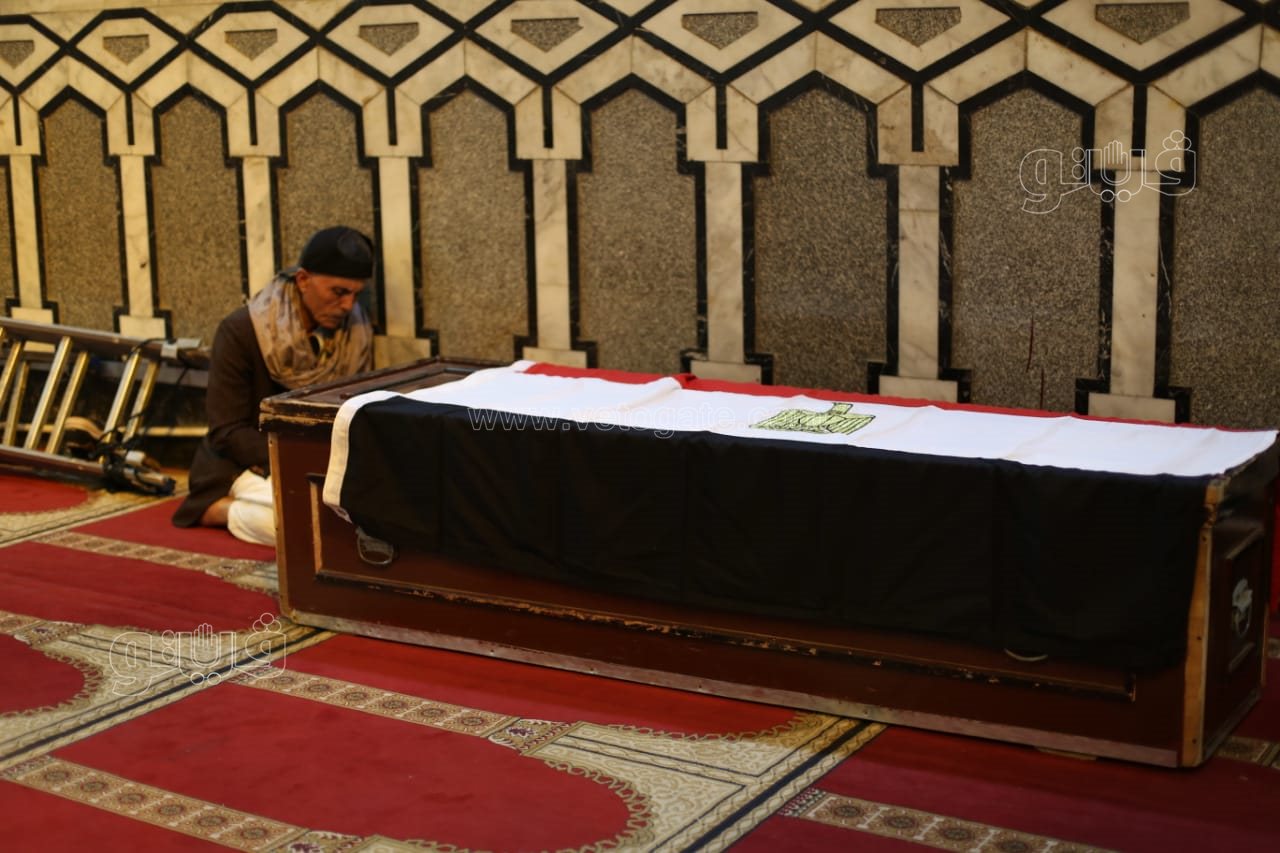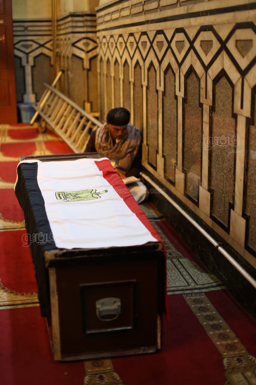 وصول جثمان الموسيقار محمد سلطان إلى مسجد عمر مكرم لصلاة الجنازة ملفوفا بعلم مصر| صور