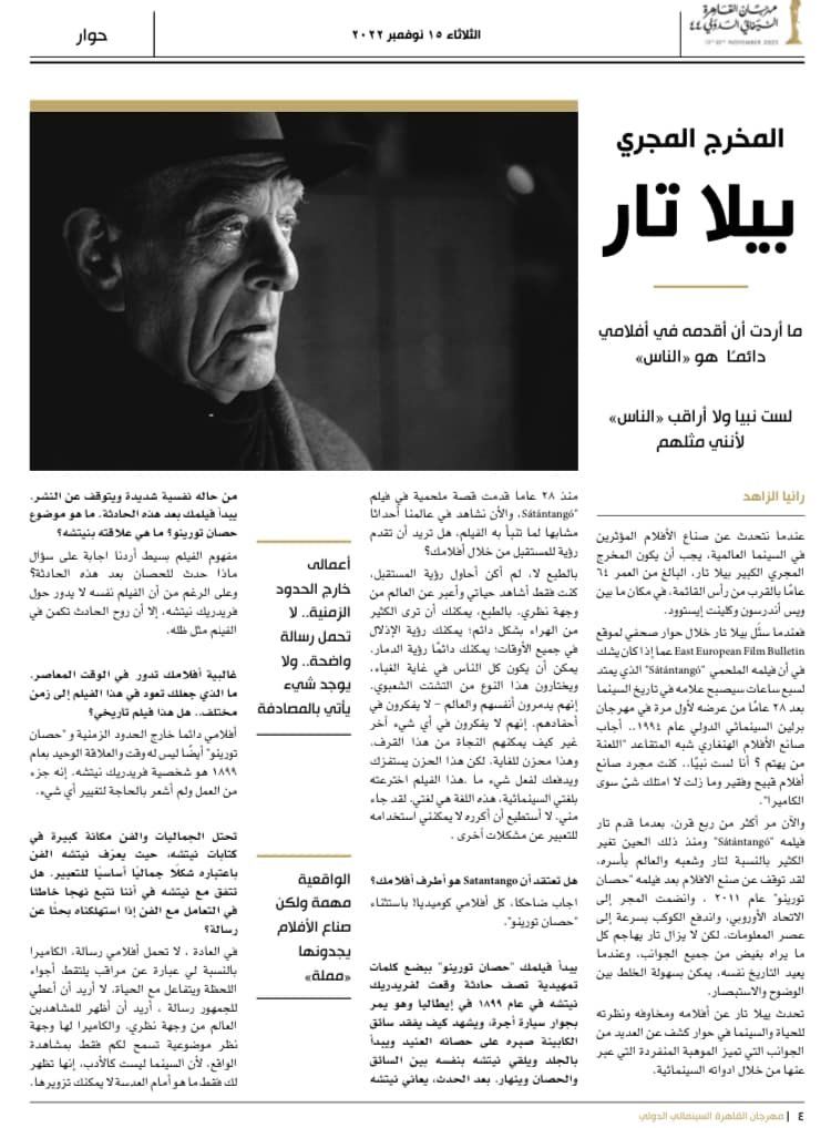 مهرجان القاهرة السينمائي يحتفي بالمخرج المجري Bela Tarr في عدد ثقافي خاص| صور