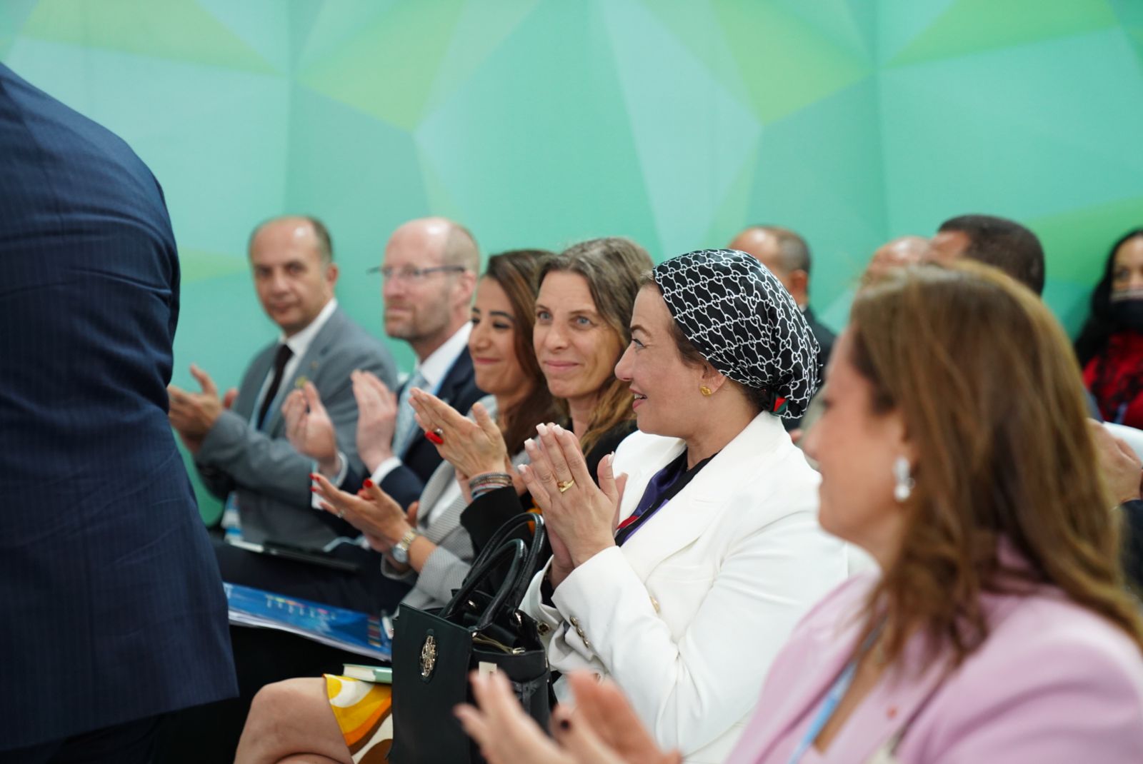 و وأضحت الوزيرة أن الحكومة المصرية أعطت أولوية وأهمية كبيرة لقضية التغيرات المناخية، نظرًا لما يشكله التغير المناخى من تهديدات، مشيرةً إلى أن الآثار اليومية لتغير المناخ تضرب مدننا الكبرى بسبب موجات الحر، وتؤدى إلى ارتفاع منسوب مياه البحر في منطقة الدلتا، وهو ما دفع الحكومة المصرية قبل الشروع في رحلة رئاسة COP27، لإعداد الإستراتيجية الوطنية للتغيرات المناخية. على أساس نهج استشاري بالتعاون بين الوزارات والعمل على تعميم استراتيجيات وخطط التنمية الوطنية والقطاعية، كما أصدرت مصر أول سند أخضر في منطقة الشرق الأوسط وشمال إفريقيا.