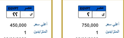 - سداد قيمة تأمين اللوحة عن طريق كارت الائتمان الخاص بطالب الخدمة، ويبدأ المزايدة مع الآخرين ويجب أن يكون المبلغ أعلى من القيمة الحالية للوحة بمقدار الحد الأدنى لرفع المزايدة على هذه اللوحة.