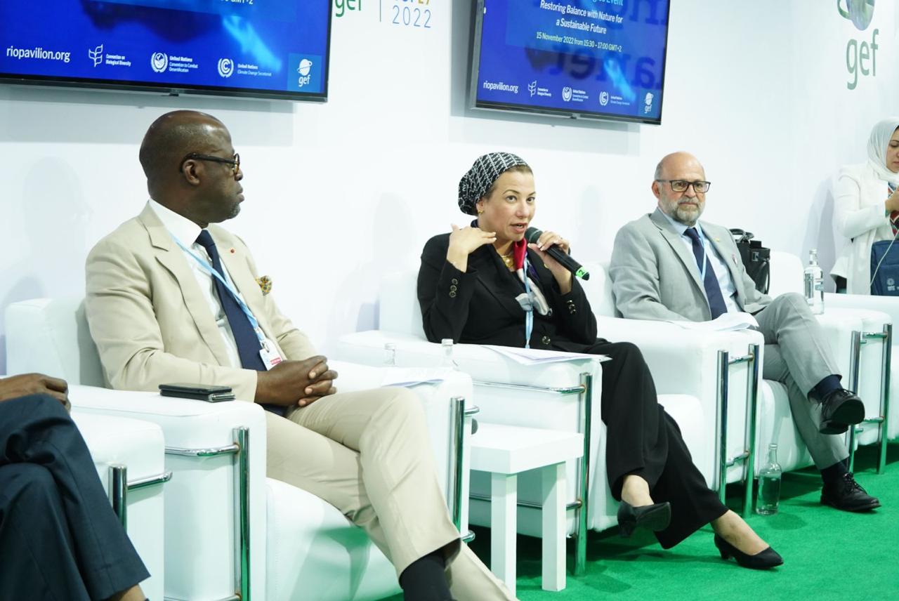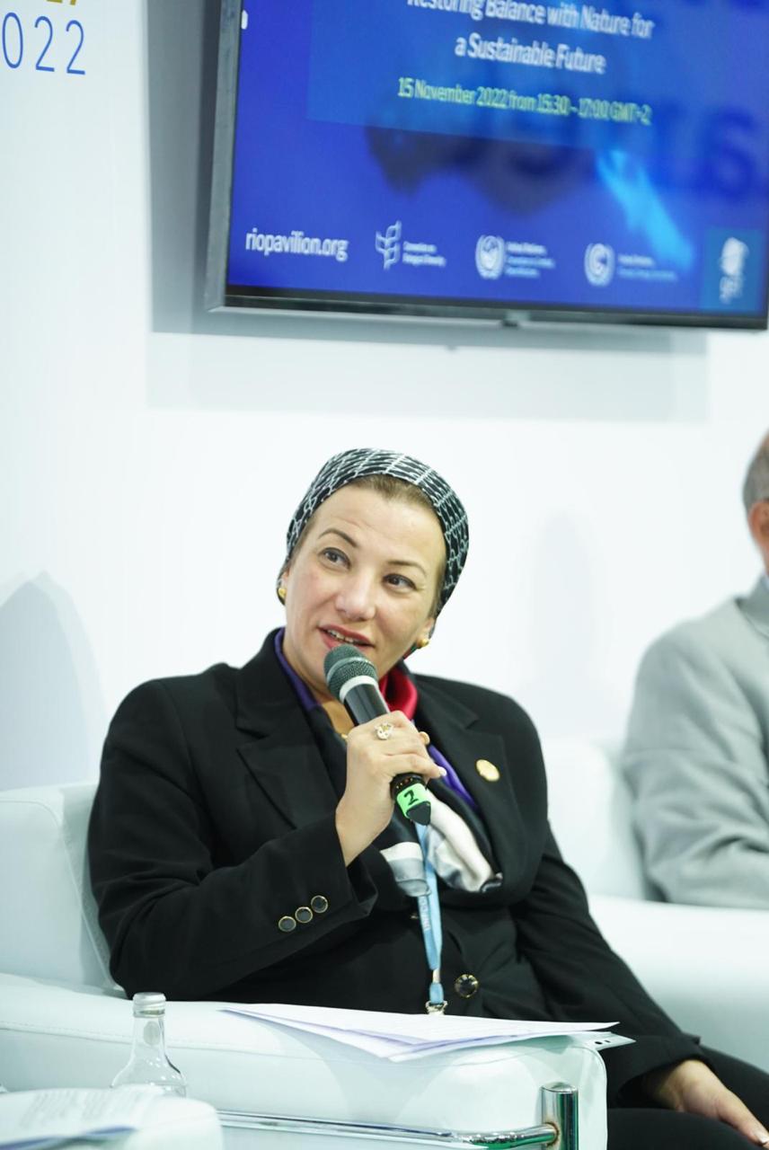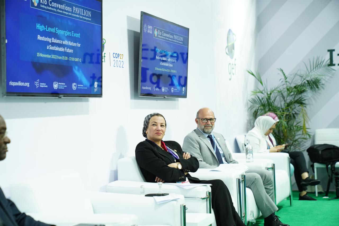 وأشارت الوزيرة إلى حرص مصر خلال رئاستها لمؤتمر المناخ COP27 على تخصيص يوم للتنوع البيولوجي، لإعطاء فرصة جيدة من COP27 إلى مؤتمر التنوع البيولوجي COP15 لبدء اتخاذ اجراءات تنفيذية على الأرض، مشيرة إلى أن اتفاقية التصحر ستكون جزء من هذا لأن تدهور الأراضي قضية أساسية للتنوع البيولوجي، حيث تؤمن مصر أن هذا سيناريو الربط بين مسار اتفاقيات ريو الثلاث هو نموذج حقيقي لكفاءة استخدام المصادر.