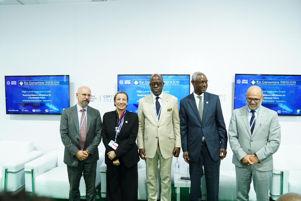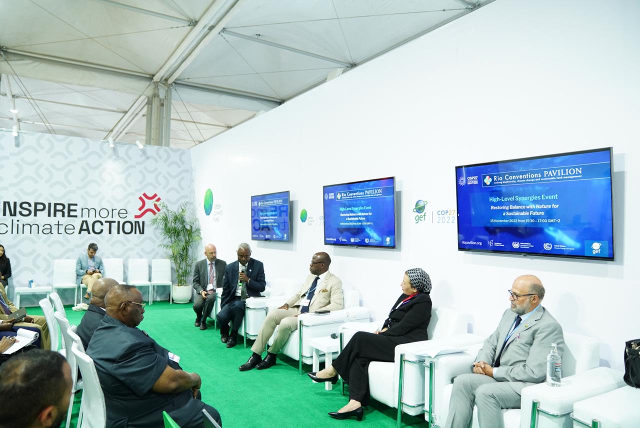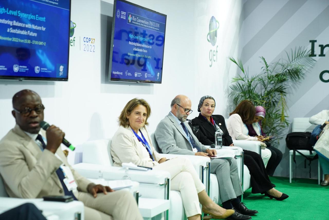 وأشارت الوزيرة إلى حرص مصر خلال رئاستها لمؤتمر المناخ COP27 على تخصيص يوم للتنوع البيولوجي، لإعطاء فرصة جيدة من COP27 إلى مؤتمر التنوع البيولوجي COP15 لبدء اتخاذ اجراءات تنفيذية على الأرض، مشيرة إلى أن اتفاقية التصحر ستكون جزء من هذا لأن تدهور الأراضي قضية أساسية للتنوع البيولوجي، حيث تؤمن مصر أن هذا سيناريو الربط بين مسار اتفاقيات ريو الثلاث هو نموذج حقيقي لكفاءة استخدام المصادر.