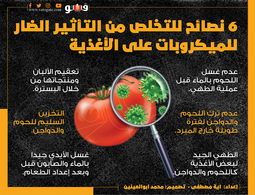 6 نصائح للتخلص من التأثير الضار للميكروبات على الأغذية | انفوجراف الجمعة 18/نوفمبر/2022 - 01:41 م 11/18/2022 1:41:01 PM إعداد الطعام آية مصطفى شارك طباعة 18 حجم الخط شارك طباعة اللحوم والدواجن غسل الايد غسل الايدي الماء والصابون انفوجراف الدواجن