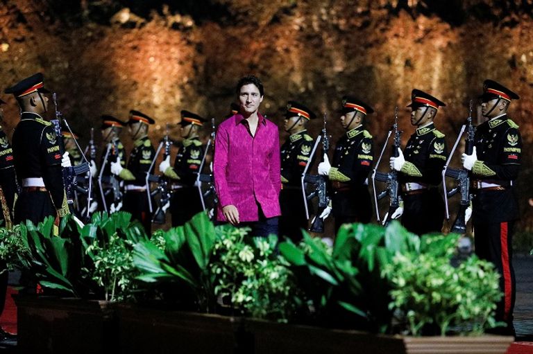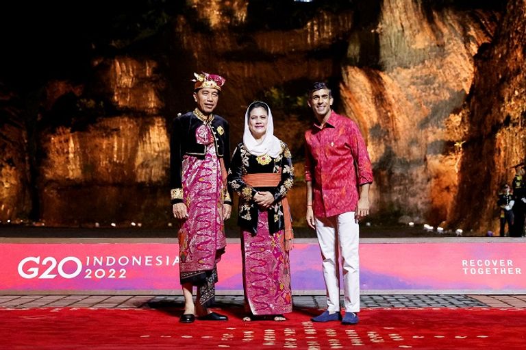 وارتدى الزعماء الزي الإندونيسي الشهير، حيث كان في استقبالهم رئيس البلاد جوكو ويدودو مرحبا بهم في حديقة جارودا ويسنو كينكانا الثقافية، في بادونج، بالي، إندونيسيا.