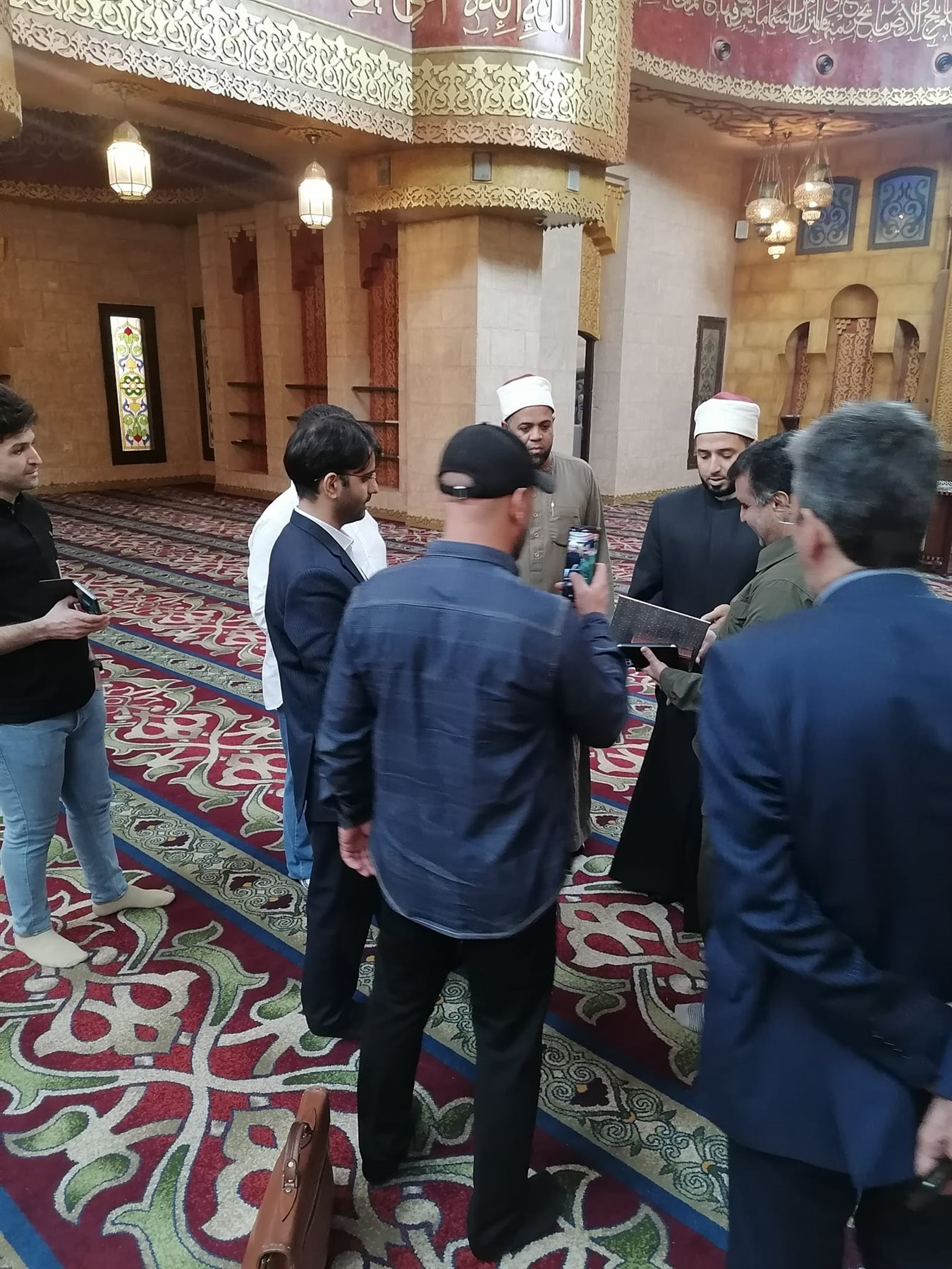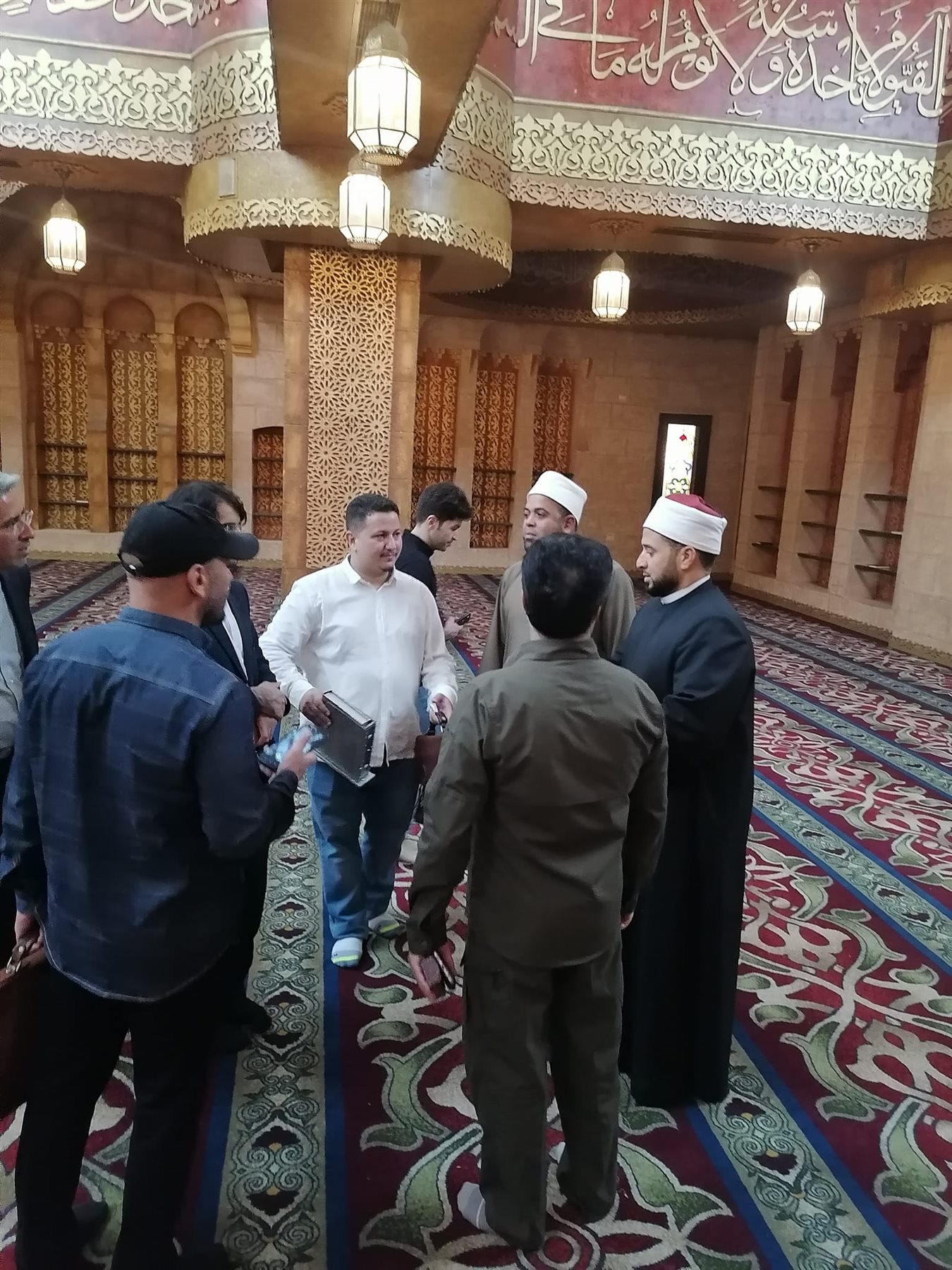 وقدم أئمة المسجد شرحا مفصلا باللغة الإنجليزية عن المسجد من حيث الطراز المعماري، والأنشطة القائمة بالمسجد، فيما أبدى الضيوف إعجابهم بالمسجد وبطرازه المعمارى الفريد، وأعربوا عن إعجابهم وسعادتهم البالغة بالدور التوعوى الذى يقوم به المسجد فى نشر الفكر الوسطى المستنير.