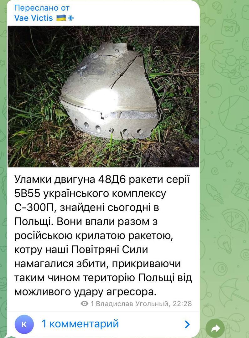 تداولت صفحات إخبارية أوكرانية على "تلغرام" صورا لحطام أحد الصواريخ الذي سقط داخل الأراضي البولندية.