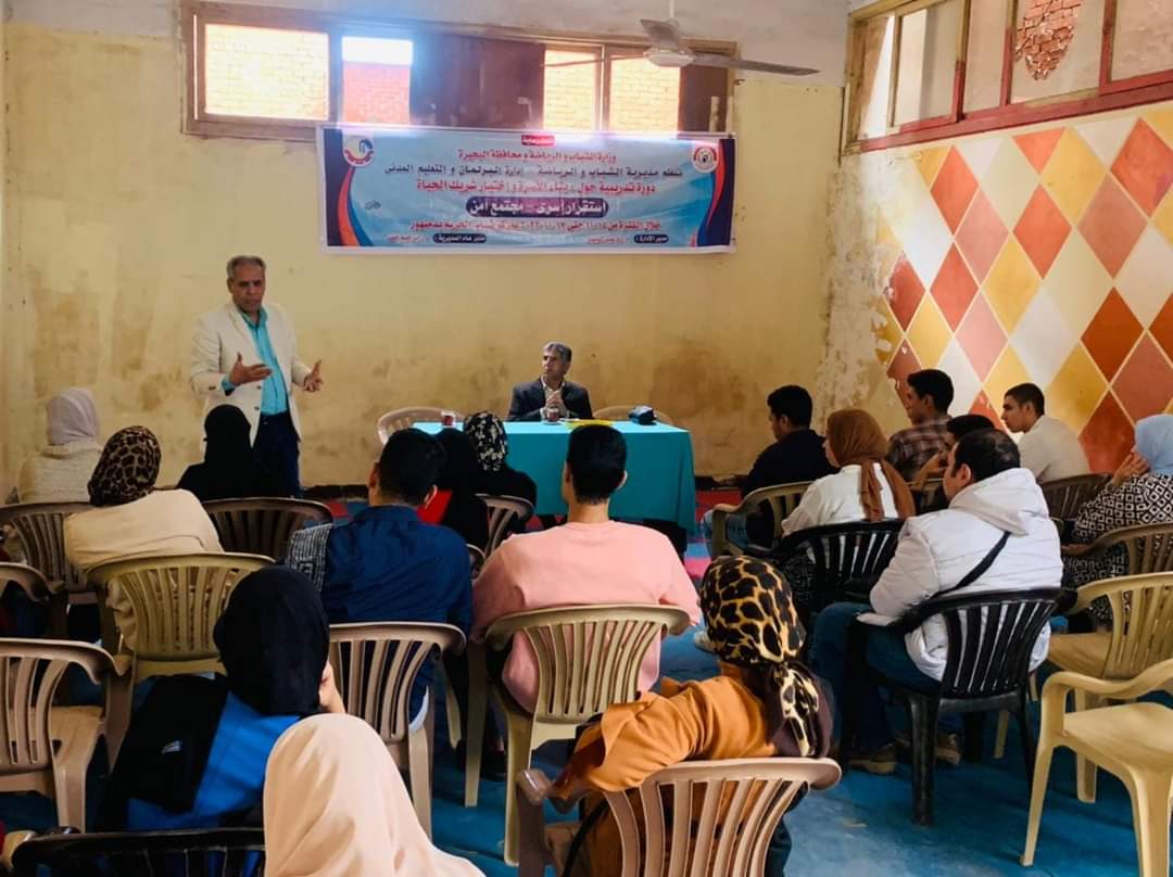 نفذت مديرية الشباب والرياضة، إدارة البرلمان والتعليم المدنى، دورة تدريبية بعنوان "بناء الأسرة واختيار شريك الحياة"، "استقرار أسري: مجتمع آمن " في الفترة من 15 الي 17 نوفمبر الجاري بمركز شباب الحرية بدمنهور اليوم بحضور فعلي 30 مشارك شاب وفتاة.