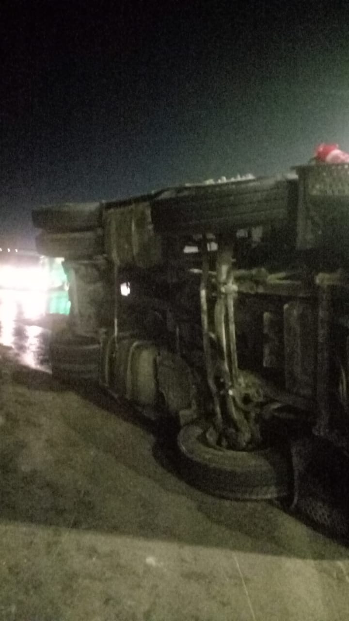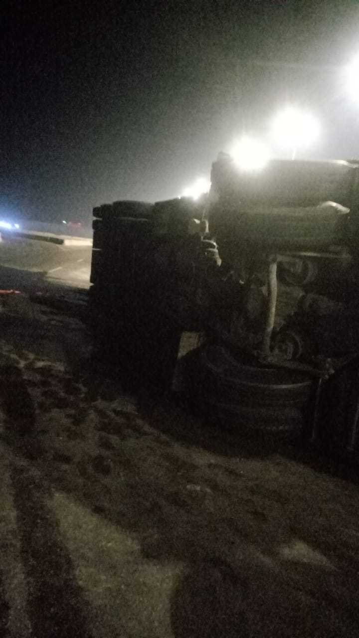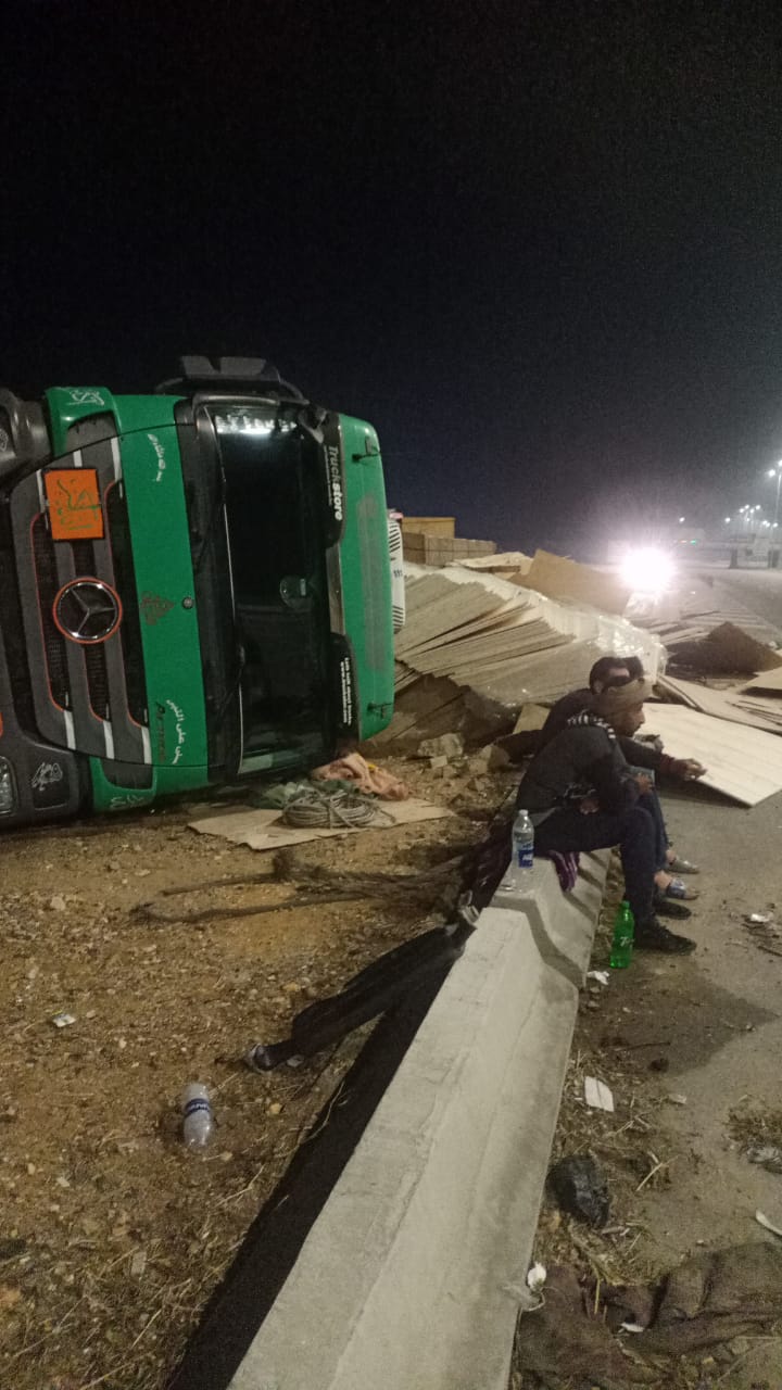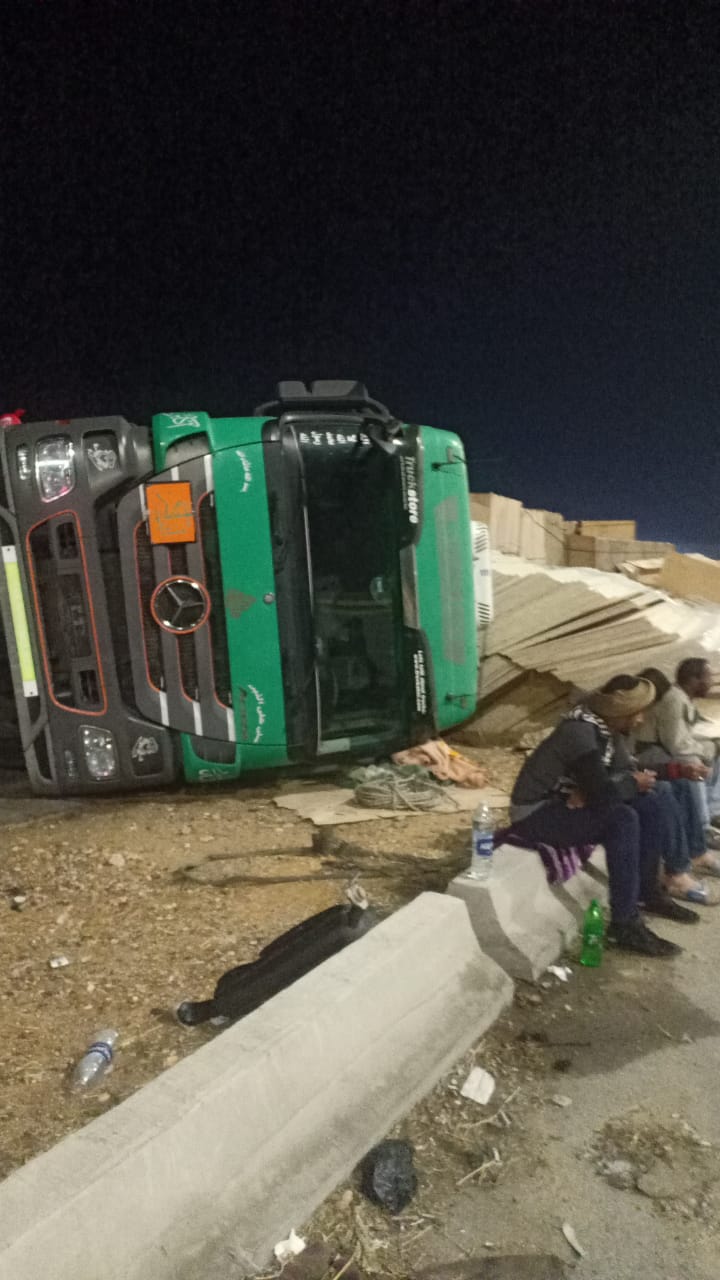 ومن خلال الفحص المبدئي تبين أن رقم السيارة" ١٩٢٧ ن.ق.و "مقطورة" رقم ٨٤٢٩ ن.ت.د "وتم رفعها وفتح الطريق ولا توجد خسائر بشرية.