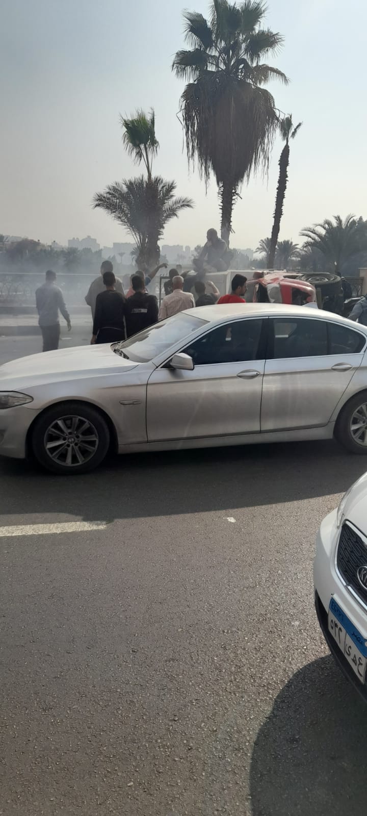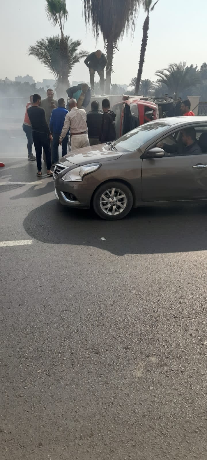 إصابة مواطن في تصادم سيارتين بشارع البحر الأعظم بالجيزة | صور