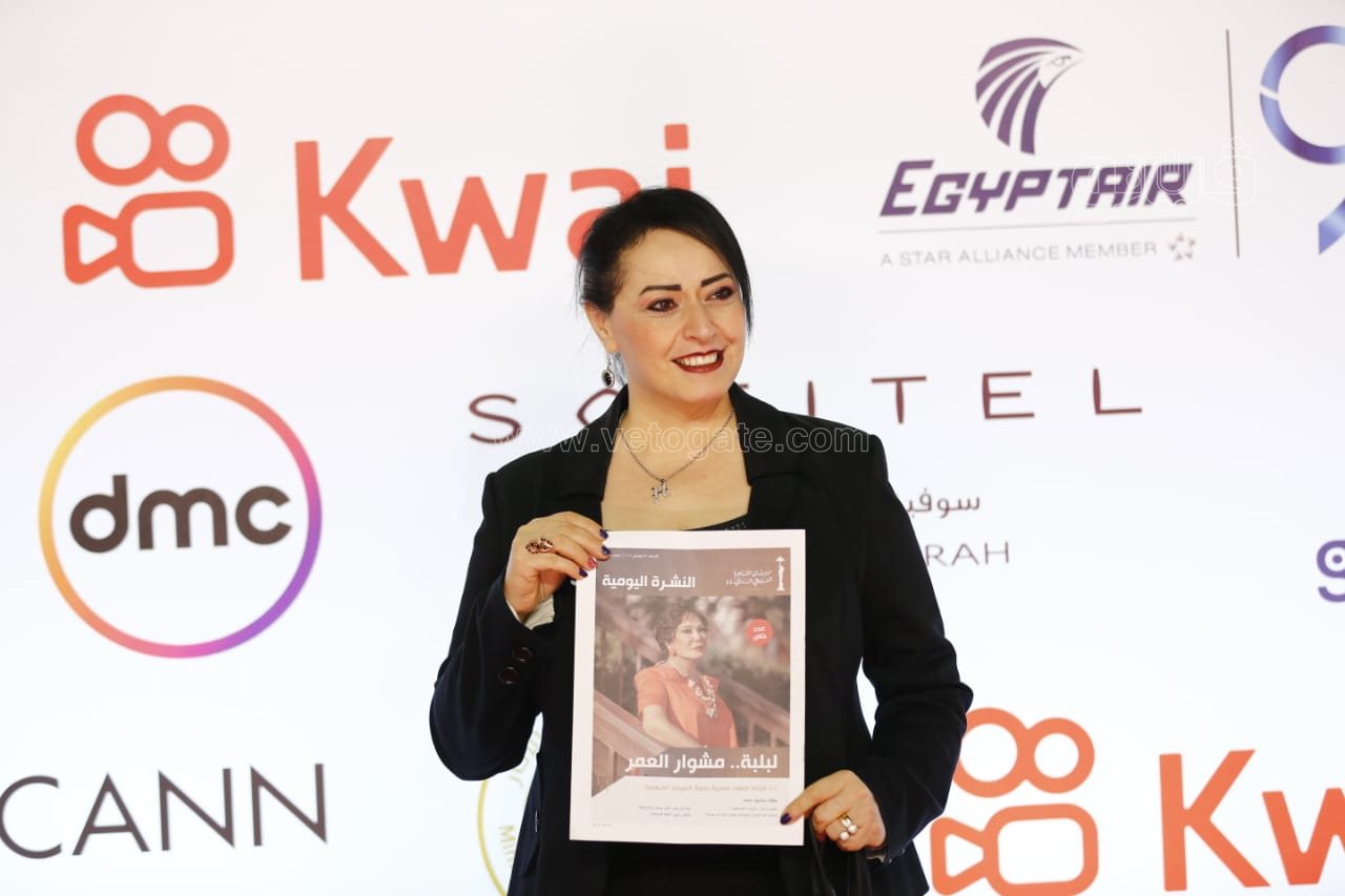 ورفعت هند على ريد كاربت الفيلم صورة للفنانة لبلبة من نشرة المهرجان المطبوعة، وحرصت على التقاط الصور وهي ترفع صورة لبلبة.