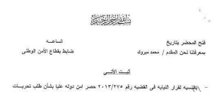 - بالنسبة لقرار النيابة في القضية رقم ٢٠١٣/٢٧٥ حصر أمن دولة عليا بشأن طلب تحريات الأمن الوطني حول واقعة حكم محكمة جنح مستأنف الإسماعيلية في القضية رقم ٢٠١٣/٣٣٨ بشأن ما تضمنه الحكم من وقائع وكذا وقائع الاستعانة بالعناصر المصرية والأجنبية في اقتحام السجون المصرية وقتل بعض الأشخاص وإصابة آخرين وتهريب المسجونين.