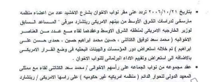 وقد تم الاطلاع على الرسائل الواردة عليه من خلال استخدام الباس وورد ZAGAGIG2011.. والذي أبلغه بأنه التقى أحد عناصر الاستخبارات الأمريكية بتاريخ ٢٠١١/١/٢٠ حيث استفسر من الإخوانى المذكور عن إمكانية قيام جماعة الإخوان بدور في تحريك الشارع المصري.