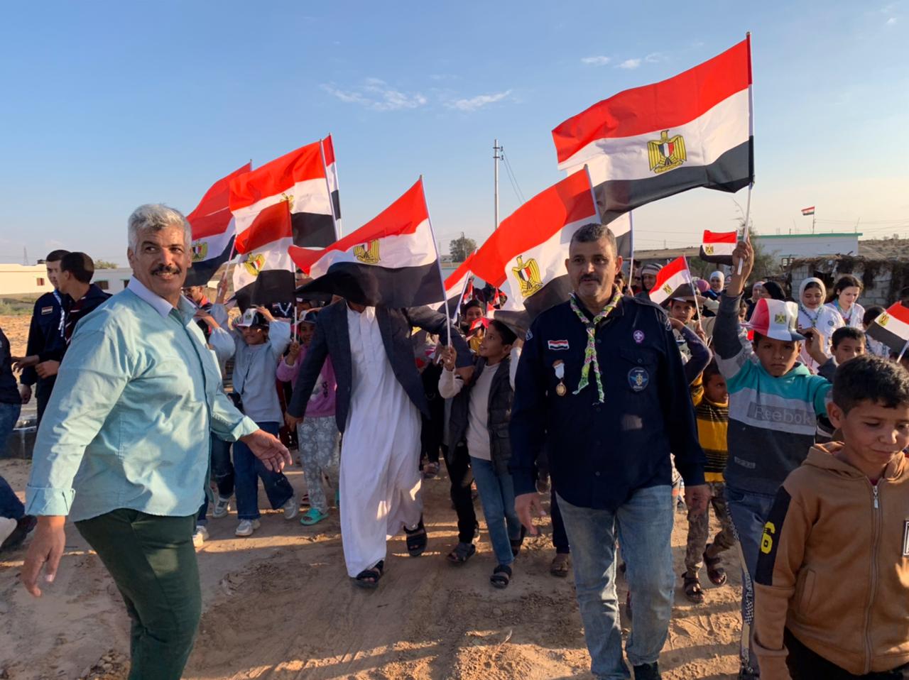 وشارك الحضور مع أهالي وأطفال تجمعات "الغراء"، وهم يحملون علم مصر فى ماراثون وسط الطبيعة من موقع تأسيس حديقة الأبطال، وصولا لموقع انعقاد فعاليات الملتقى، وسط أراض زراعية تم استصلاحها وزراعة بعضها بالقمح والشعير وأخرى بشتلات اللوز والزيتون، ومساحات يسير العمل فى استصلاحها تمهيدا لزراعتها بجهود الأهالى.