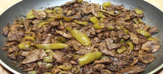 - وبعد أن ينضج القلب والكلاوي أضيفي لهما الفلفل الأخضر والأحمر واستمري في التقليب لمدة 3 دقائق.