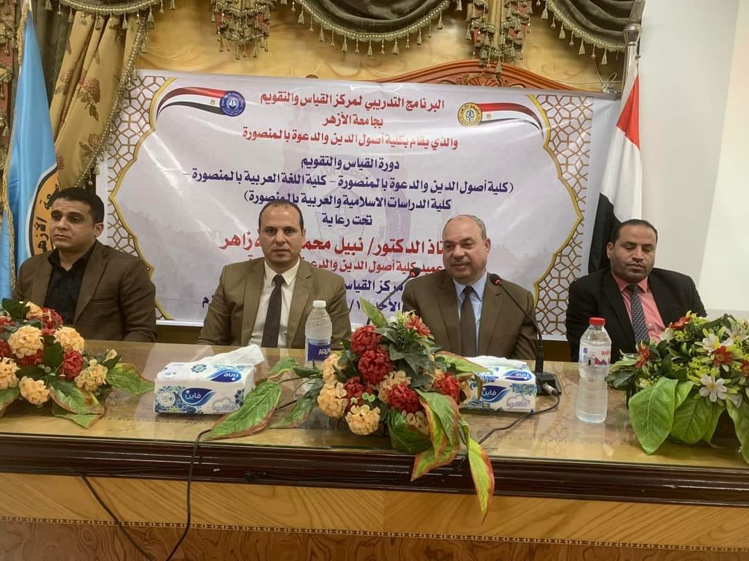 تمت فعاليات البرنامج التدريبي الثالث الذي ينظمه مركز القياس والتقويم بالجامعة بمقر كلية أصول الدين بالمنصورة برئاسة الدكتور نبيل زاهر، عميد الكلية، لأعضاء هيئة التدريس بوحدات القياس والتقويم بالكليات المستهدفة بنطاق مدينة المنصورة، وهي كليات: (أصول الدين - اللغة العربية- الدراسات الإسلامية والعربية).