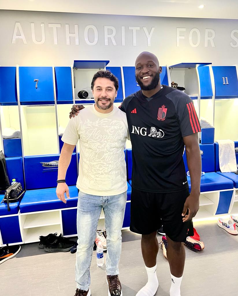 واستقبل لاعبي منتخب بلجيكا أحمد حسن فى مران الشياطين الحمر، قبل أن يلتقط عميد لاعبي العالم صورا تذكارية مع روميلو لوكاكو مهاجم المنتخب البلجيكي وإنتر ميلان الإيطالي.