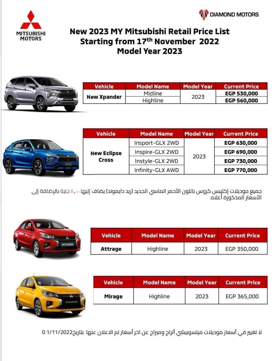 زيادة جديدة في أسعار سيارات ميتسوبيشي