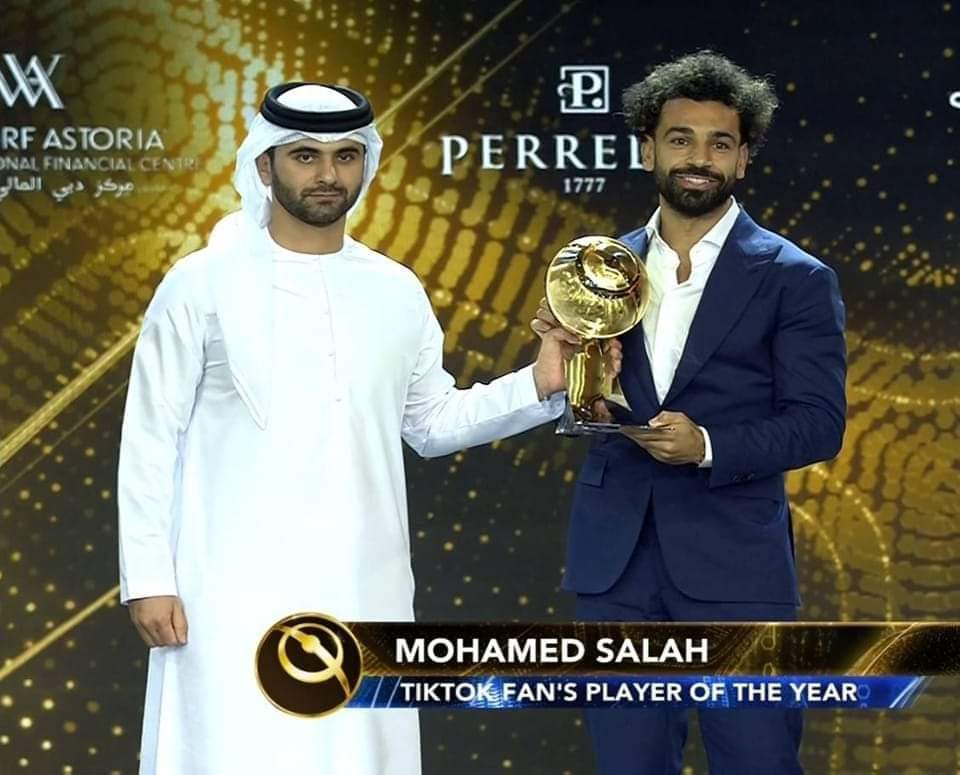 وحصد محمد صلاح جائزة أفضل لاعب بتصويت المشجعين المقدمة من تيك توك، في حفل جلوب سوكر.