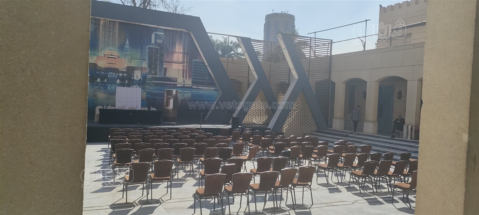 وبدأ المسرح المكشوف فى تحضير آخر الاستعدادات لاستقبال أبطال 19 ب من تحضير أماكن الحضور وتركيب الشاشات.