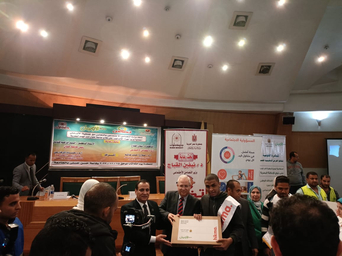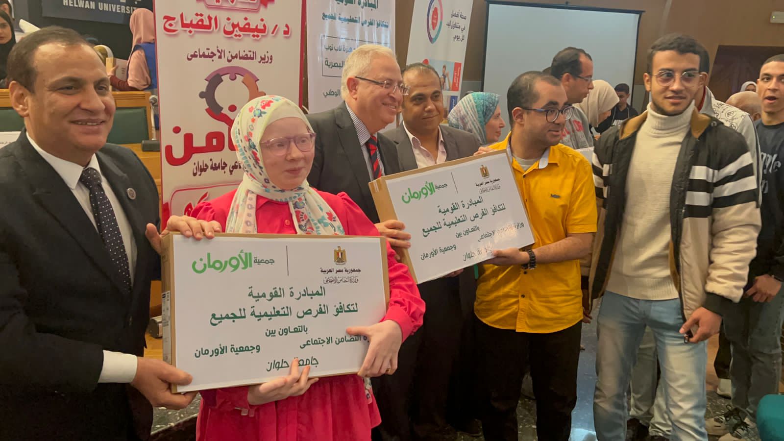 نظمت وزارة التضامن اﻻجتماعي بالتعاون مع جامعة حلوان حفل توزيع وتسليم أجهزة اللاب توب للطلاب ذوي الإعاقة البصرية بالجامعة في إطار تحقيق تكافؤ الفرص وتمكين الطلاب ذوي الإعاقة من مواصلة حياتهم العلمية.