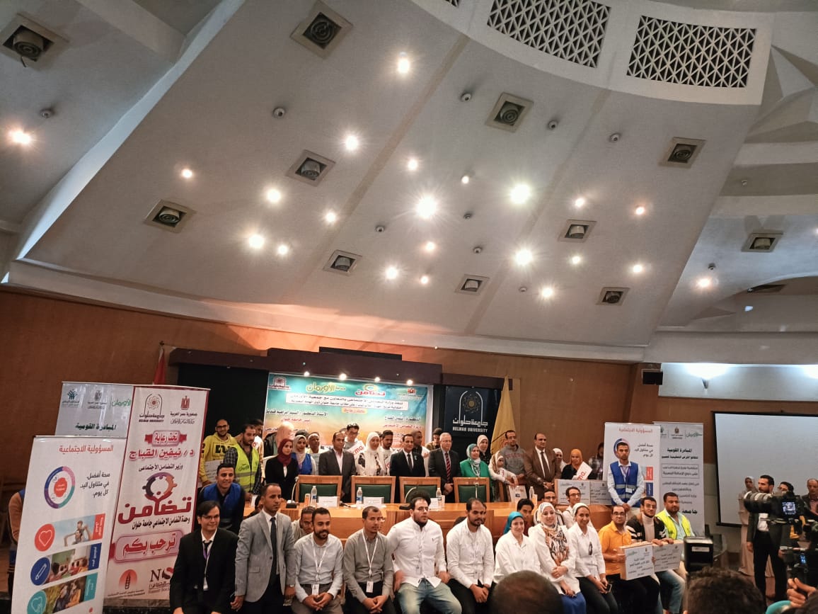 وشهد الحفل الدكتور صلاح أحمد هاشم مستشار وزيرة التضامن الاجتماعي للسياسات الاجتماعية ومنسق عام وحدات التضامن الاجتماعي بالجامعات المصرية والدكتور حسام رفاعي نائب رئيس الجامعة لشئون التعليم والطلاب والدكتور سناء حجازي مدير مركز رصد ودراسة المشكلات المجتمعية، وحسن بلال مدير البرامج والمشروعات بجمعية اﻷورمان، ووكلاء وعمداء بعض الكليات بالجامعة.