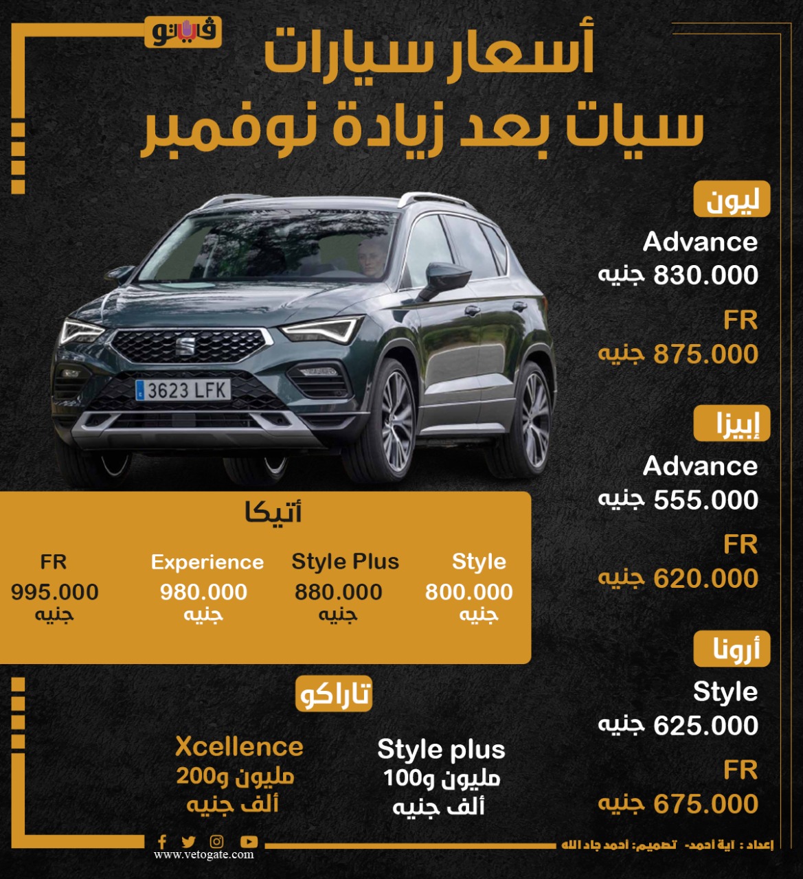 أسعار سيارات سيات بعد زيادة نوفمبر|انفوجراف السبت 19/نوفمبر/2022 - 01:53 م 11/19/2022 1:53:01 PM سيارات آية أحمد شارك طباعة 18 حجم الخط شارك طباعة أسعار سيارات سيات اسعار سيارات سعار سيارات سيات ابيزا